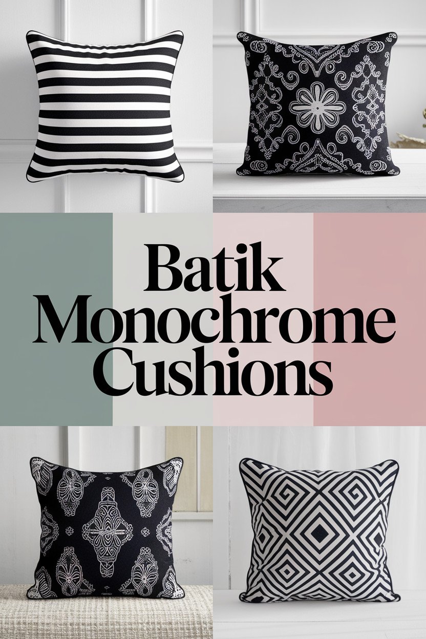 Batik monochrome cushions are not just black and white; they can include beautiful shades of grey, cream, or even earthy tones. These colors can brighten up your space, making it feel more alive. Imagine a simple monochrome sofa adorned with a few vibrant batik cushions—this creates a striking focal point that draws the eye.