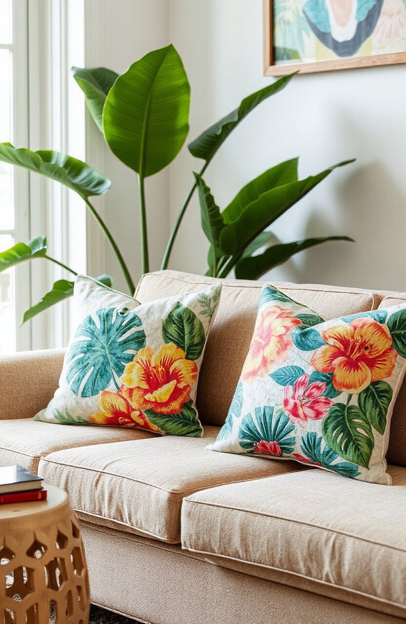 Tropical pillows are perfect for creating a relaxing, getaway atmosphere at home.