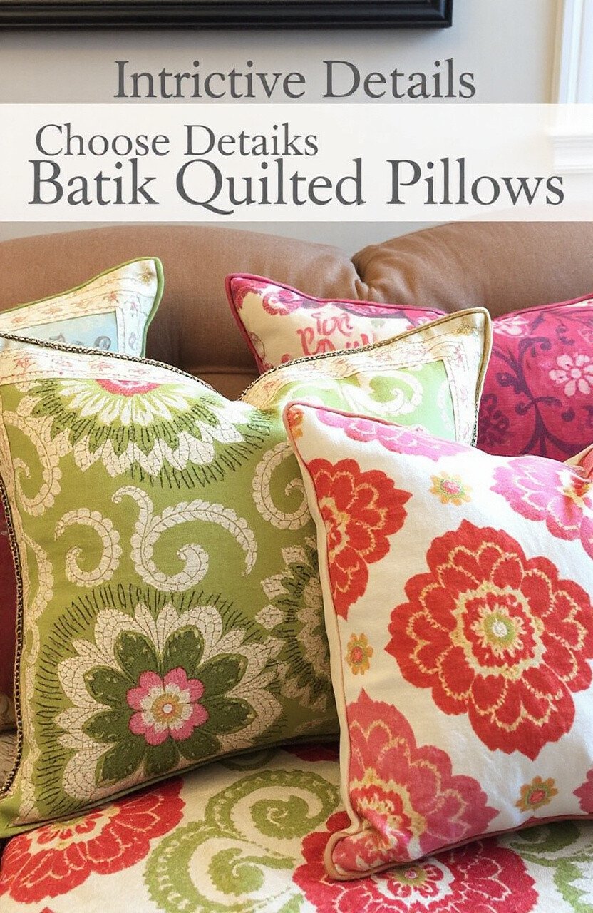 Change your batik pillows with the seasons. Use warm colors for winter and cool tones for summer.