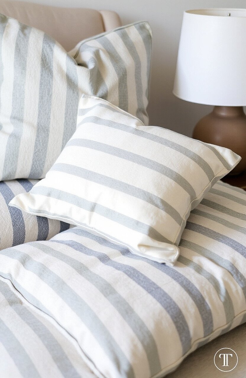 Striped pillows are sophisticated and versatile, easily pairing with other patterns.