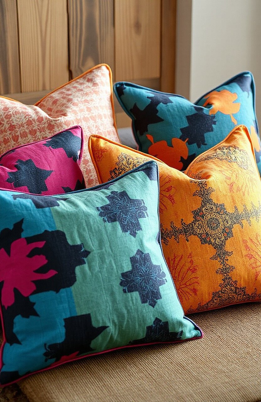 Mix and match different batik patterns to create a patchwork pillow that’s as unique as a snowflake. This approach allows you to use leftover fabric scraps, making it both eco-friendly and cost-effective.