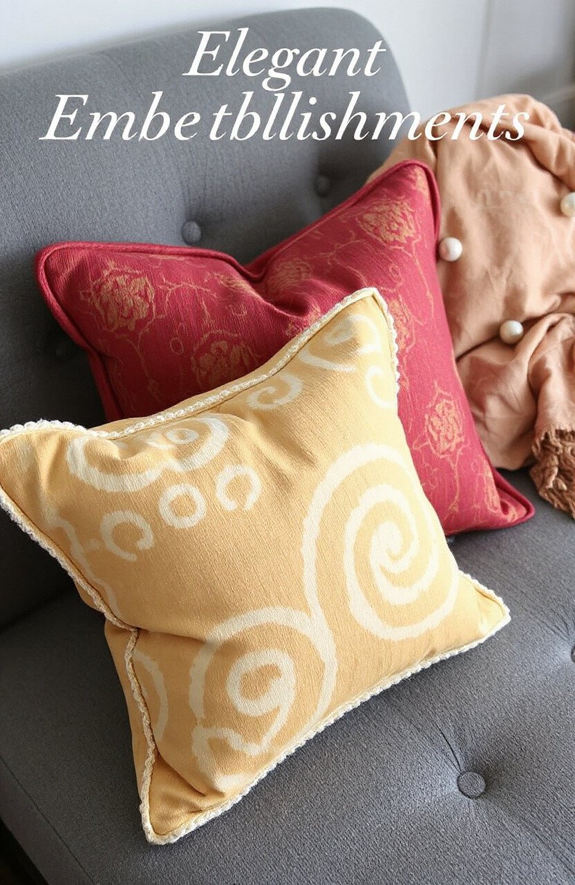 Embellished pillows are luxurious and eye-catching, perfect for a sophisticated setting.