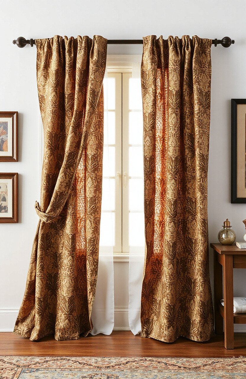 .. Achieve a cozy cabin feel with Batik drapes in earthy tones. They bring warmth and texture to your space.