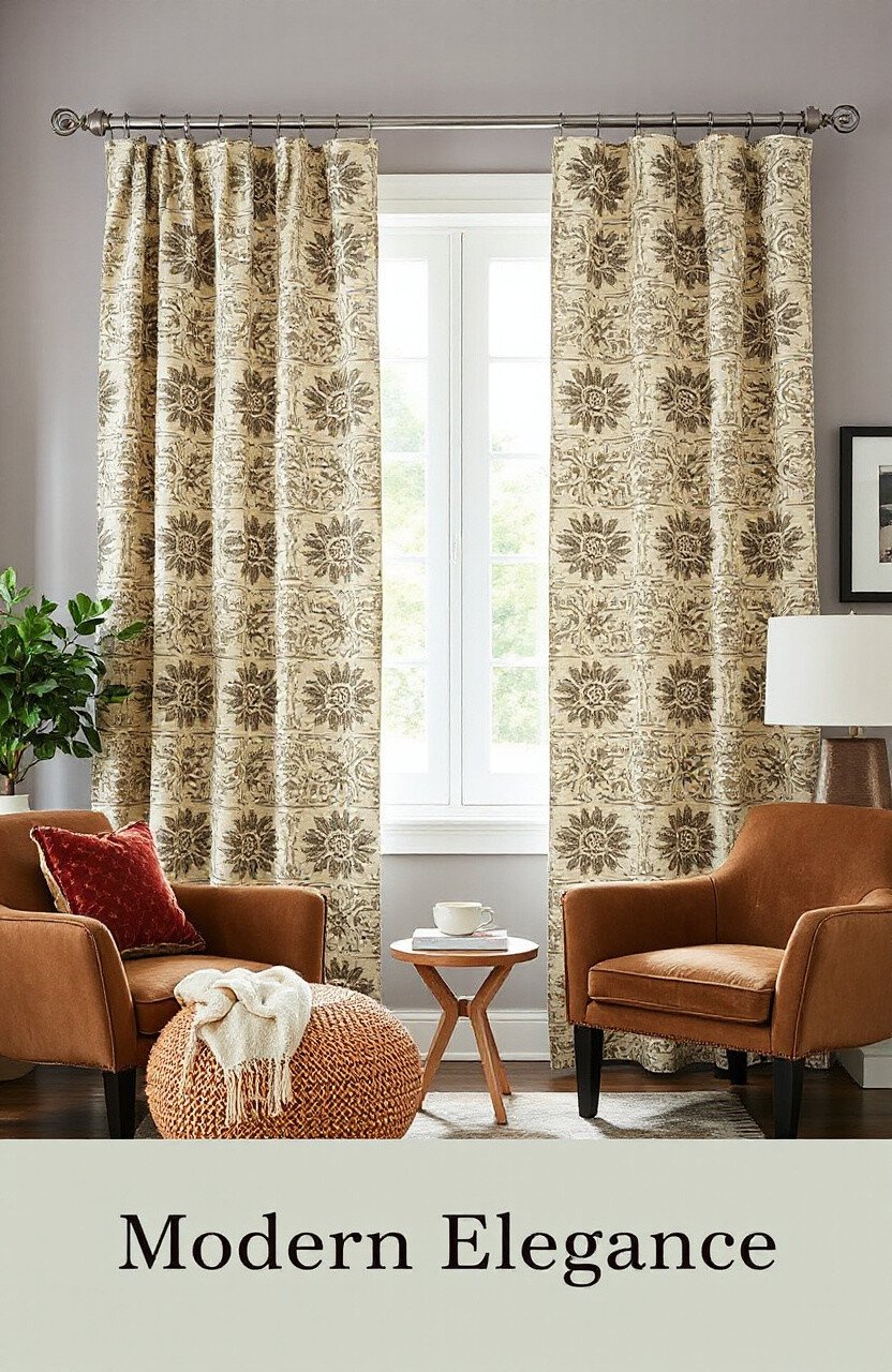 .. Achieve rustic sophistication with Batik drapes in natural, earthy patterns. They add a touch of elegance to your decor.