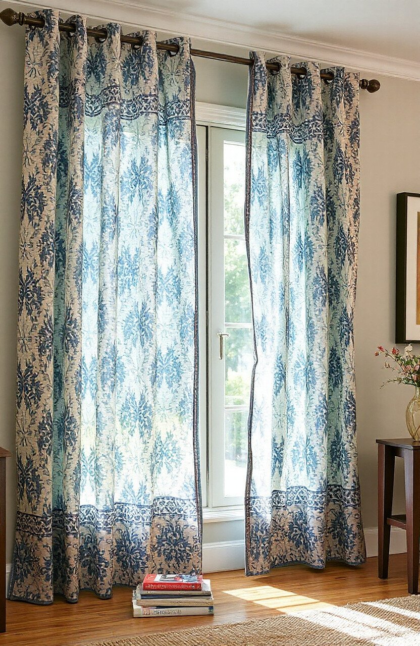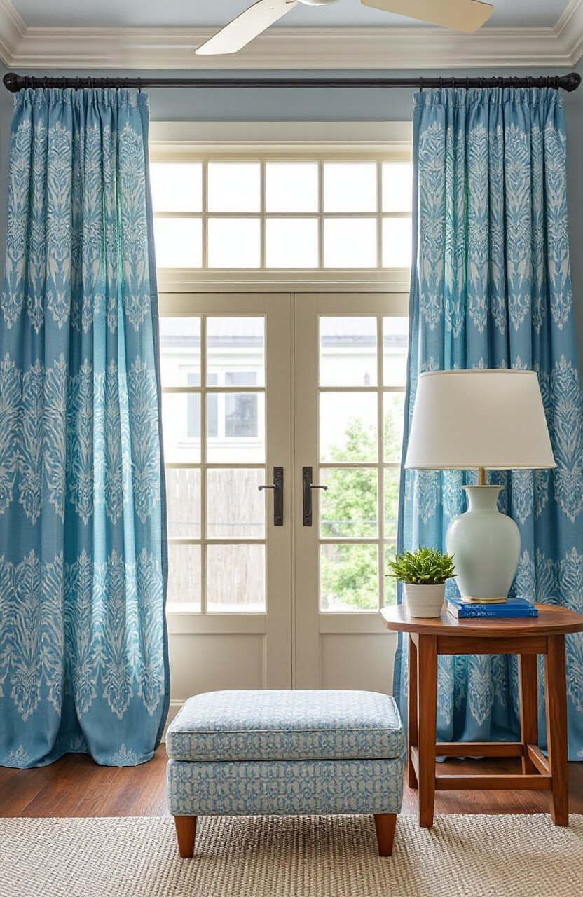 .. Achieve coastal calm with Batik drapes in ocean hues. They evoke the serenity of the sea.