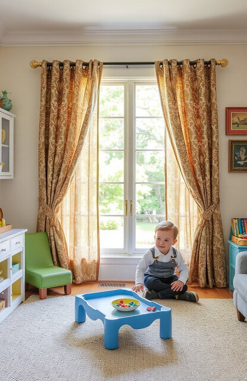 .. Add Batik drapes to a playroom for an imaginative space. The patterns inspire creativity and play.