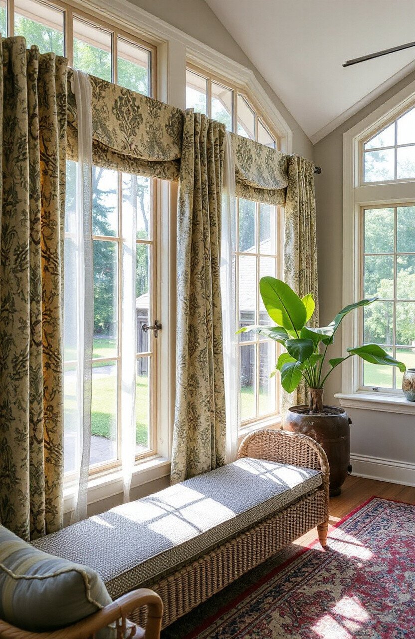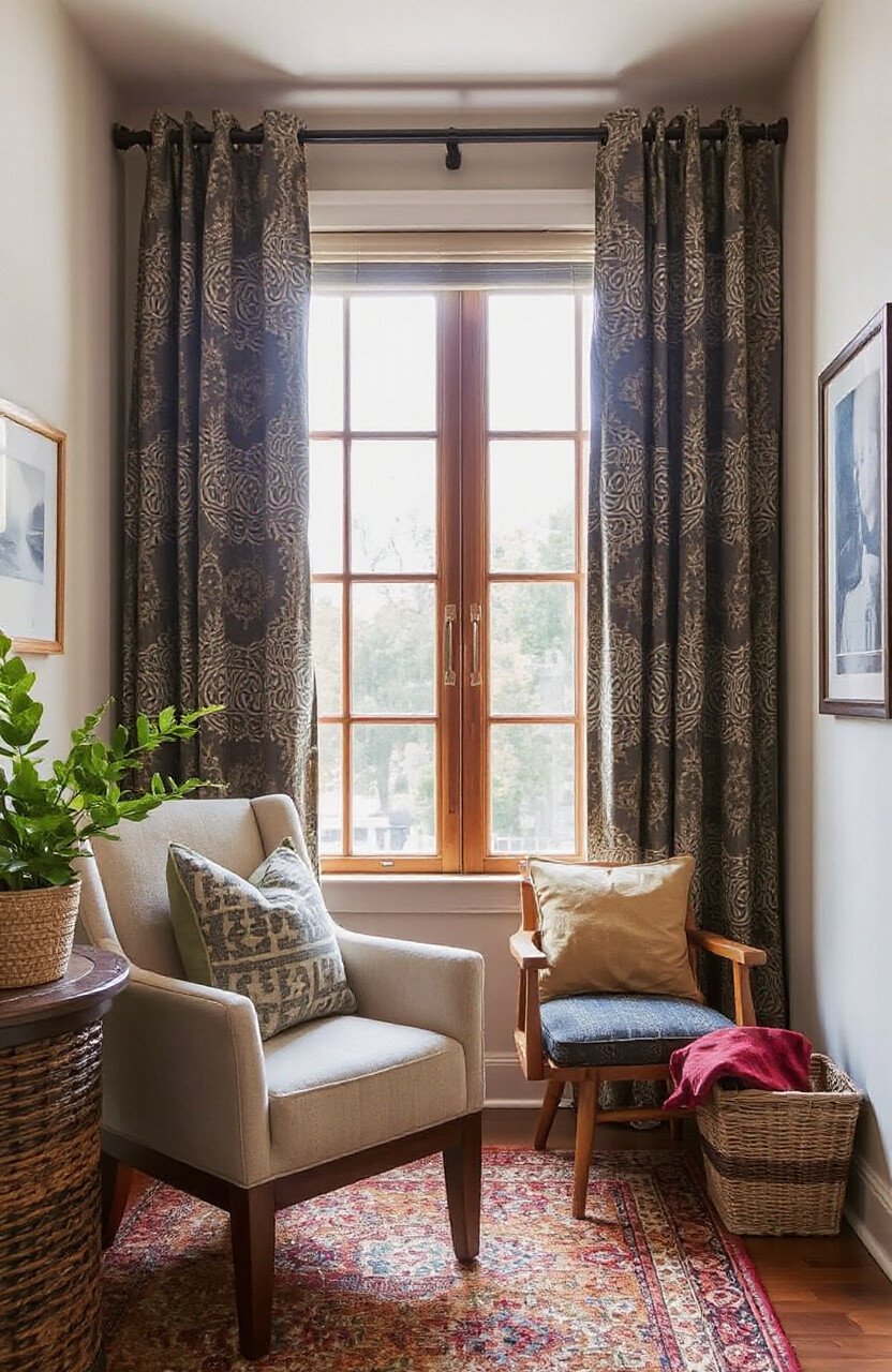 .. Enhance a window seat with Batik drapes for a cozy retreat. They offer a soft touch and a pop of color.