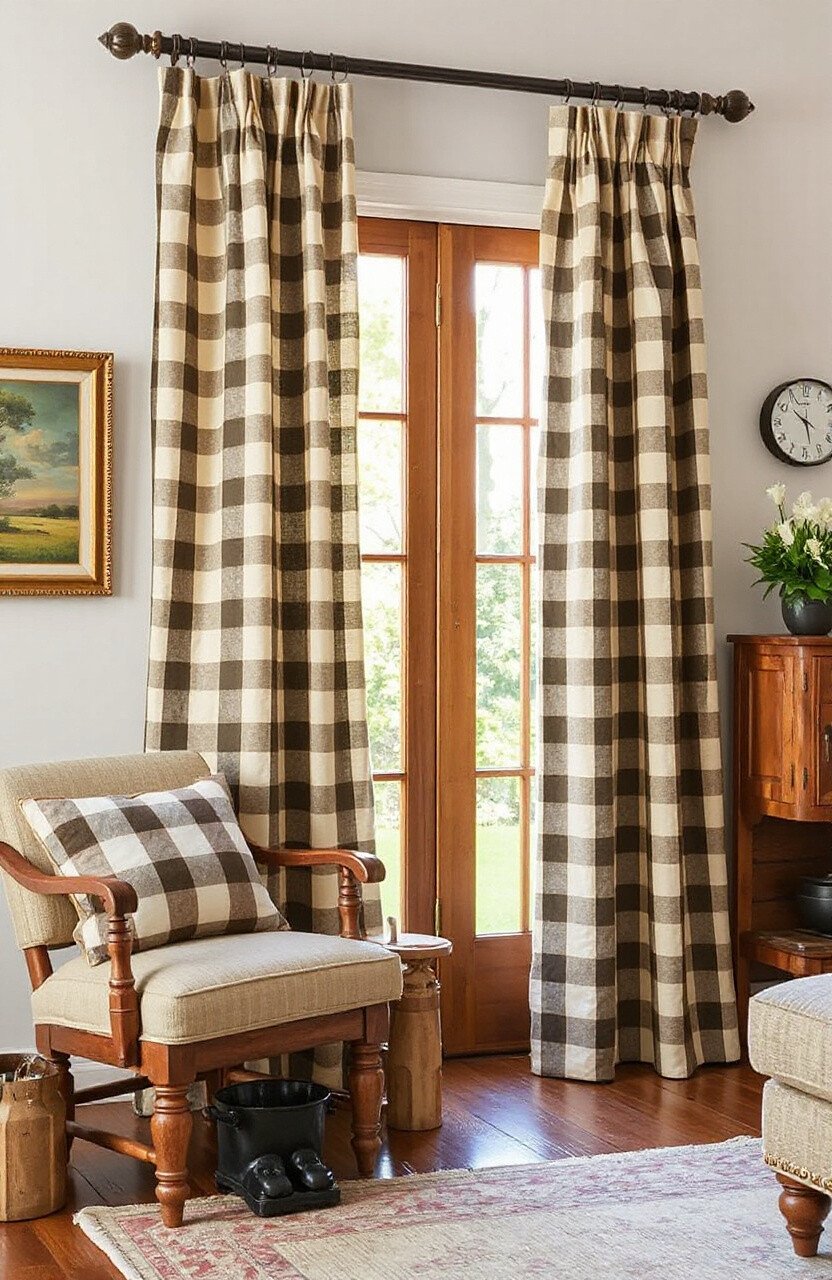 .. Incorporate farmhouse flair with Batik drapes in plaid or checkered patterns. They add a country touch to your decor.
