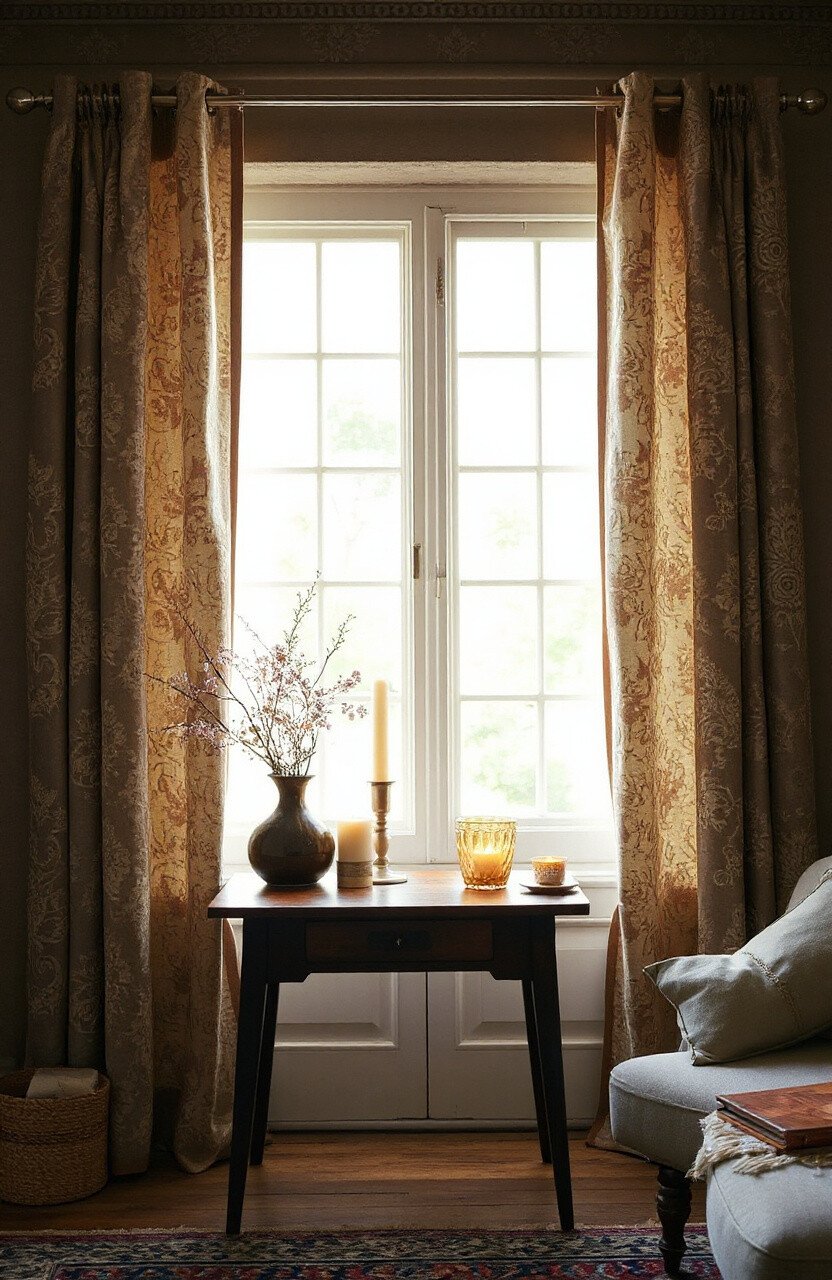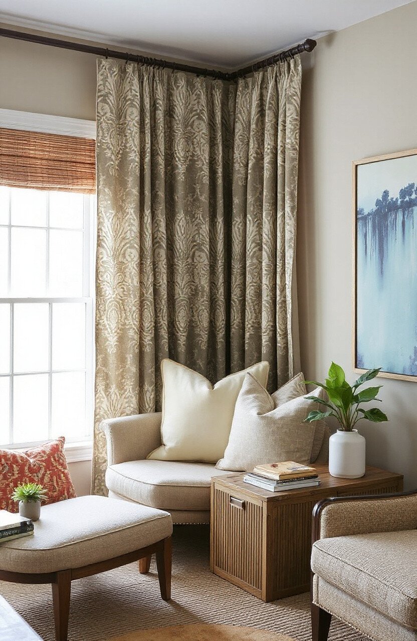 .. Create a cozy nook with Batik drapes in soft, inviting patterns. They add warmth and comfort to your space.