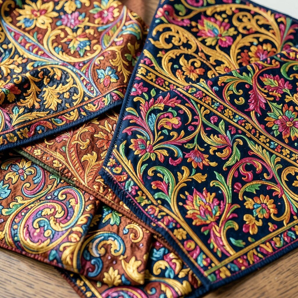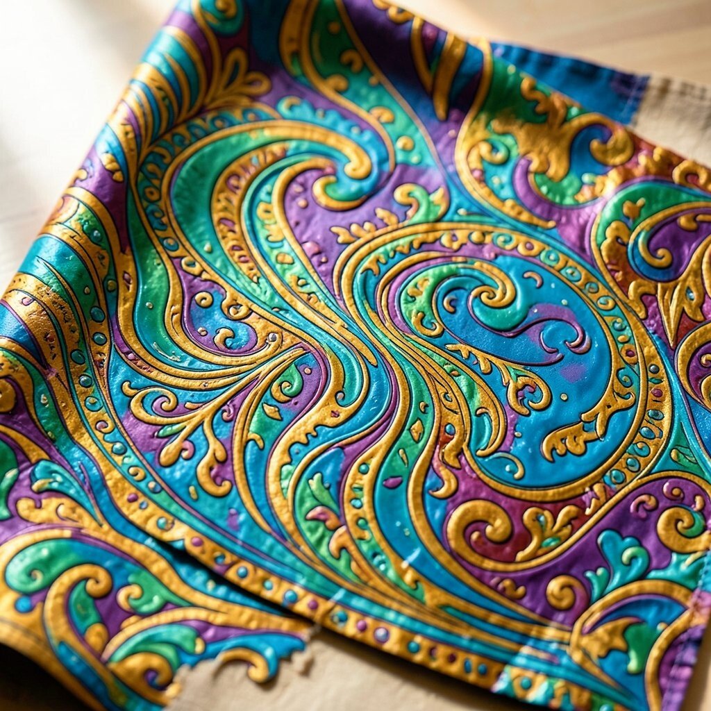 Paisley patterns are rich and ornate, with their teardrop-shaped motifs swirling elegantly on fabric. They add a touch of luxury to any project.