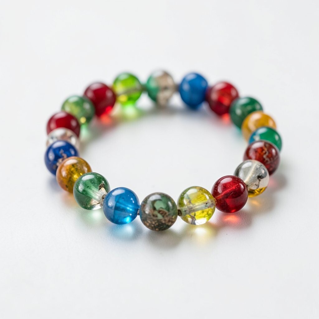 Glass beads come in a spectrum of colors and can create a dazzling bracelet. The transparency and shine of glass make it a popular choice for beaded jewelry.