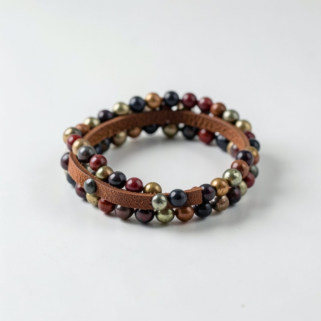 Combining rugged leather with delicate beads creates a striking contrast. This wrap bracelet can be wound around your wrist multiple times for a layered effect.