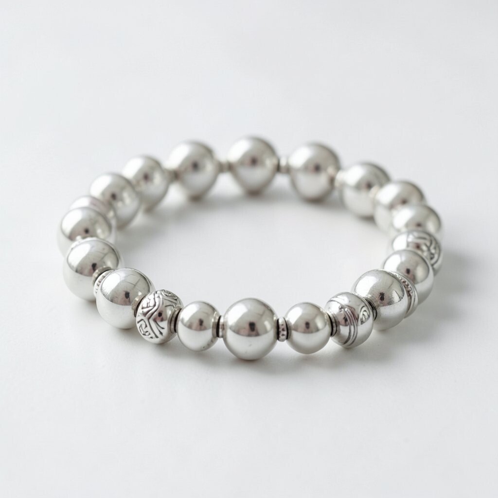Silver beads offer a classic and sophisticated look. This bracelet is ideal for adding a touch of elegance to any outfit.