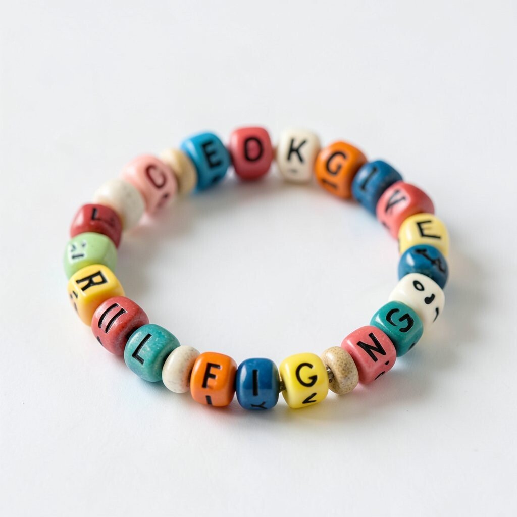 Create a personalized message or name with alphabet beads. This bracelet is a fun way to express yourself or send a special message to a friend.