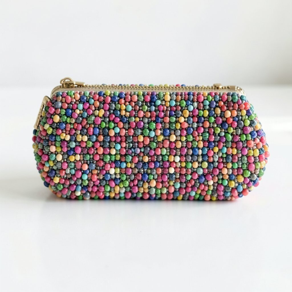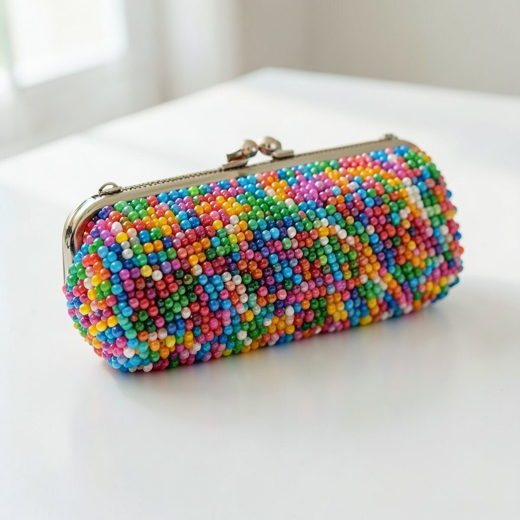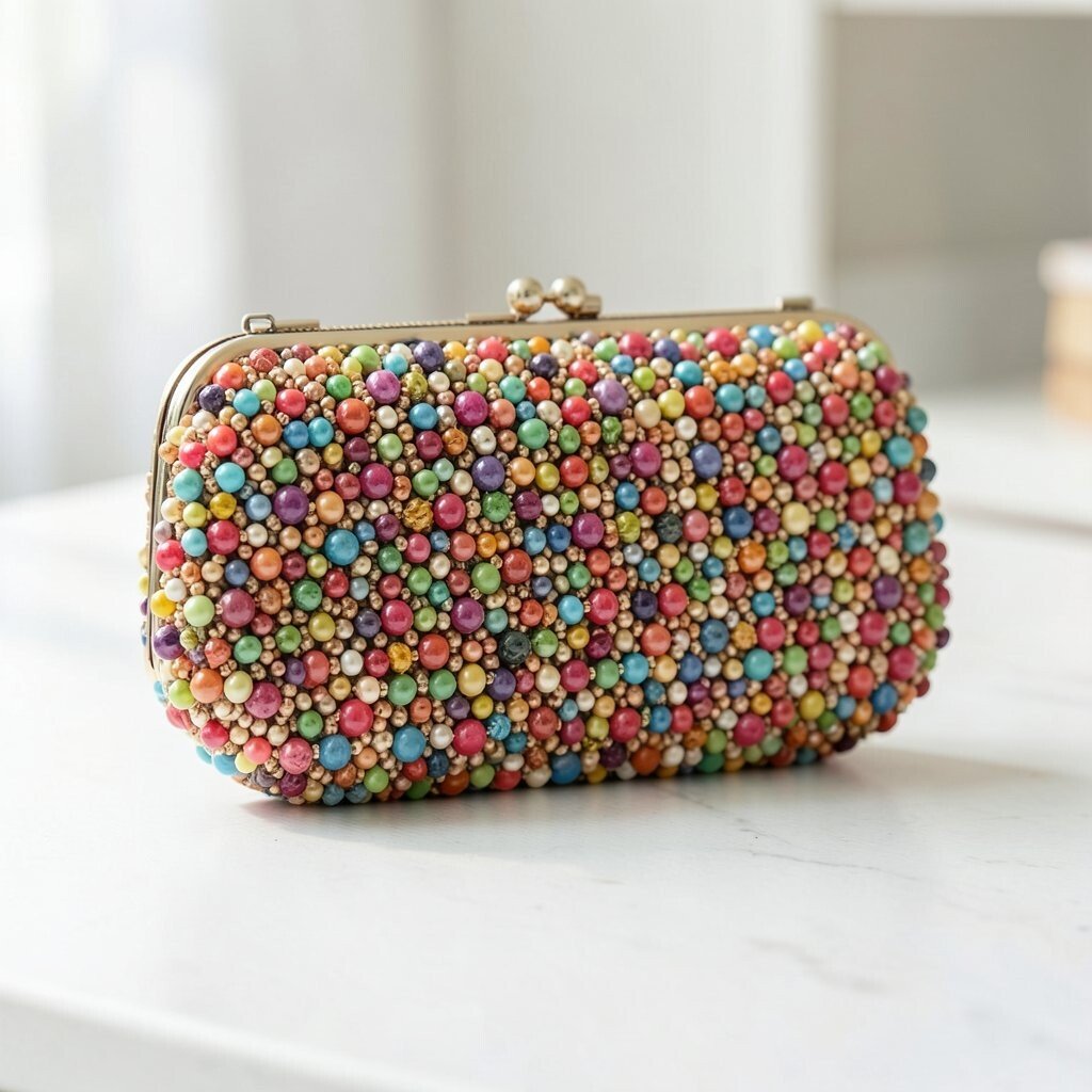This kind of clutch is great for festivals, parties, or casual nights out. The small beads create a busy, lively pattern that feels unique and fun. If you like bold style, you can match it with a single color outfit so the clutch gets all the attention.