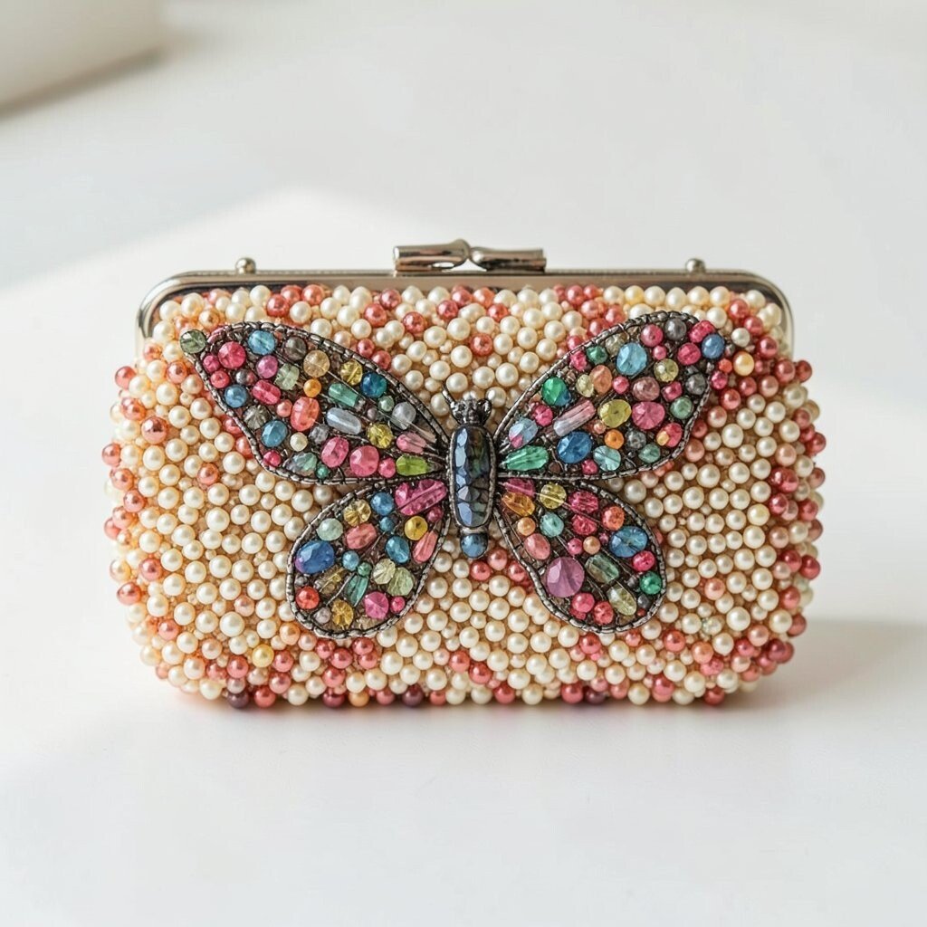 A butterfly beaded clutch feels light, pretty, and magical. The wing shapes can make it look almost like jewelry for your hand.