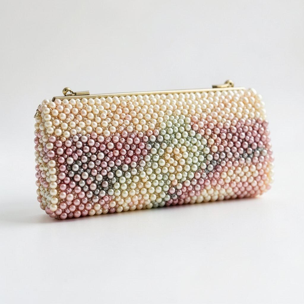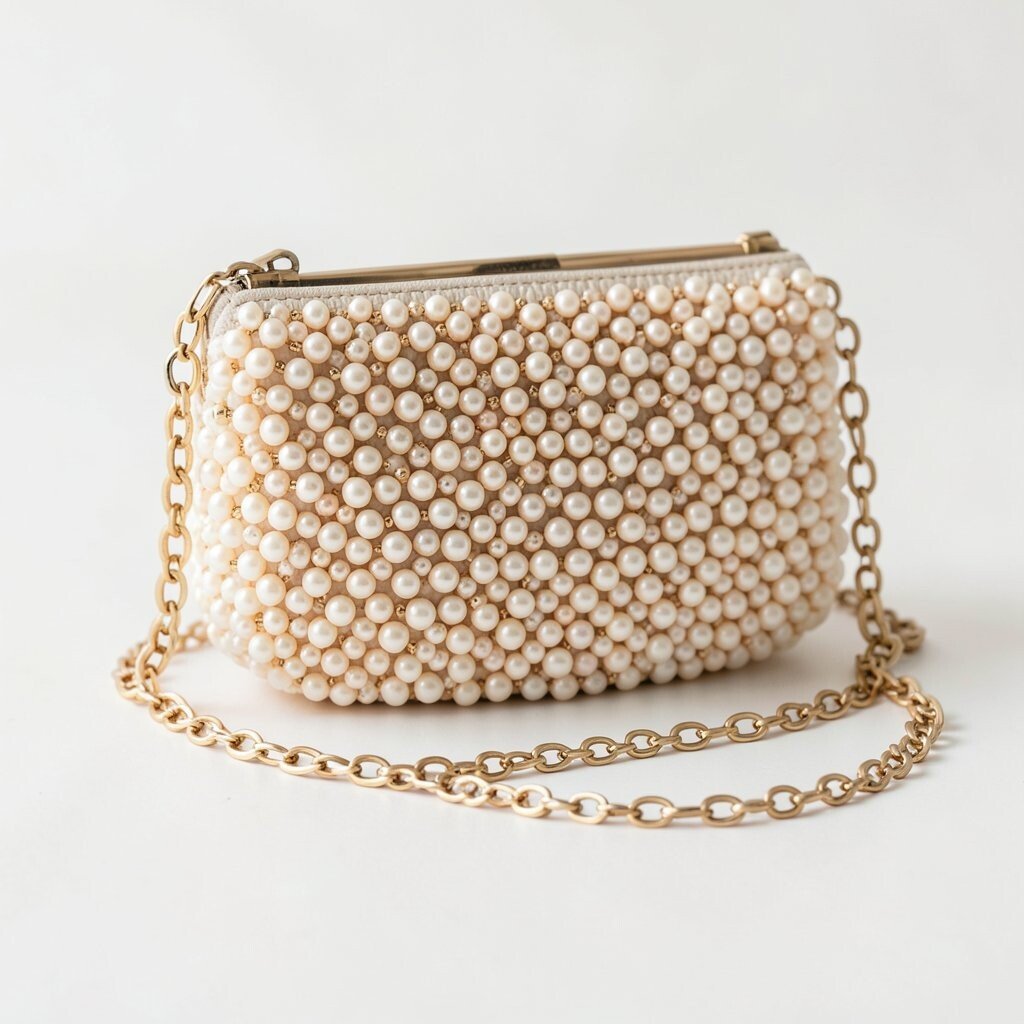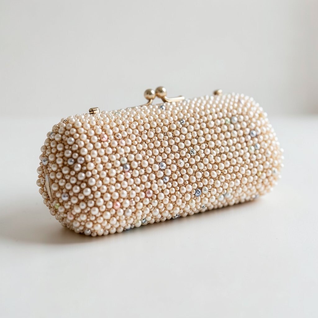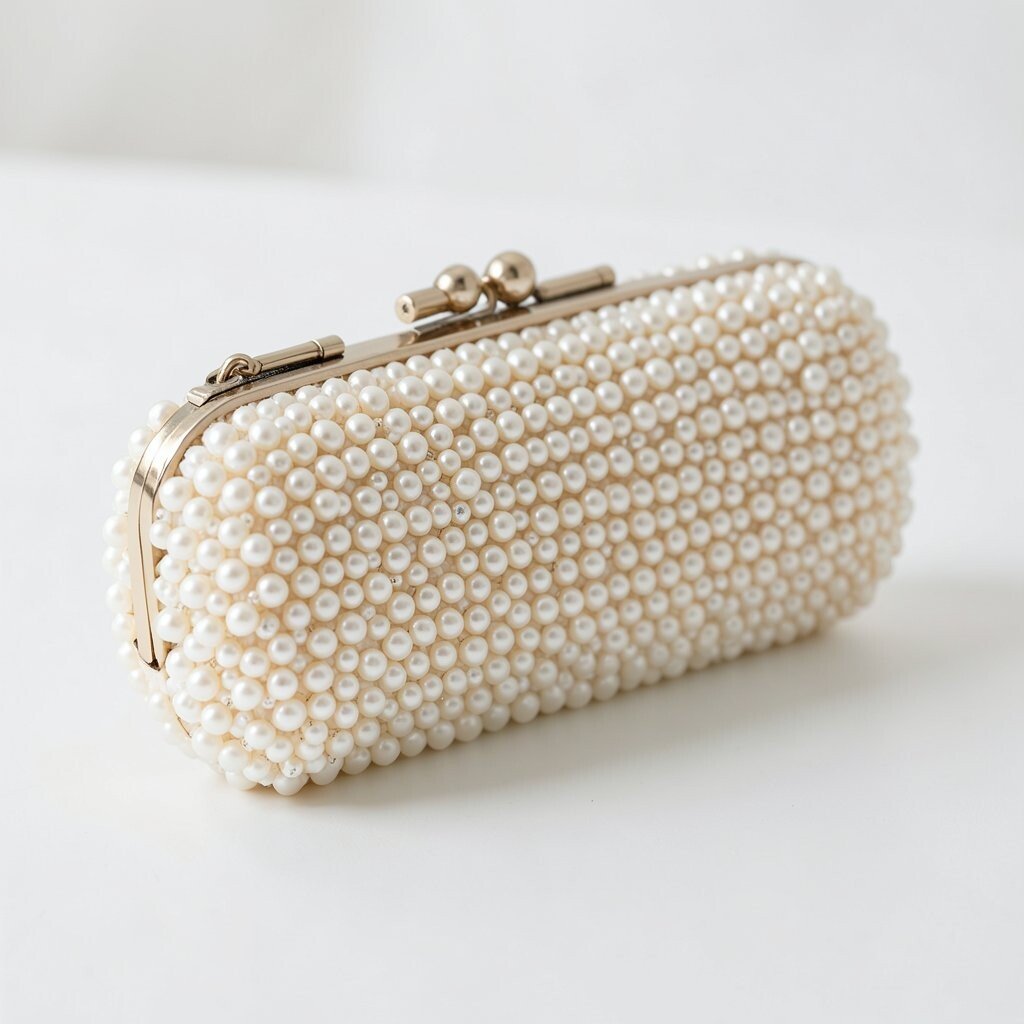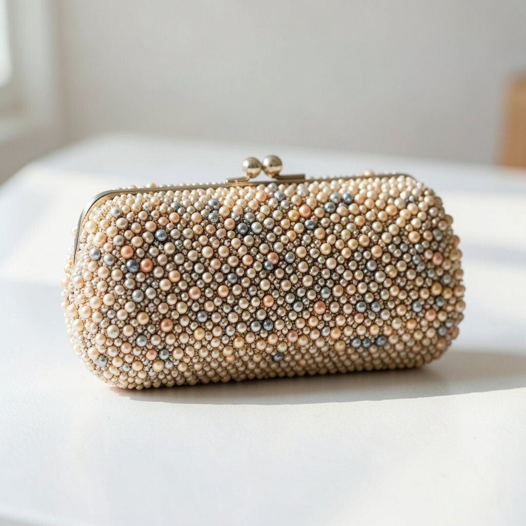 A beaded clutch with a pearl handle looks soft, sweet, and very elegant. The handle adds a fancy touch that feels neat and graceful.