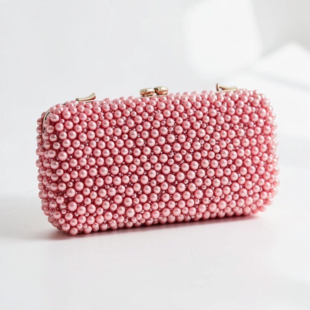 A pink beaded clutch feels cheerful, soft, and stylish. It can add a sweet touch to both casual and dressy looks.