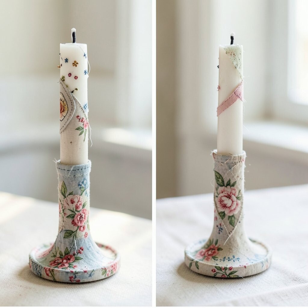 Turn ordinary candlesticks into statement pieces by wrapping them in fabric. It’s a creative way to add elegance to your table setting.