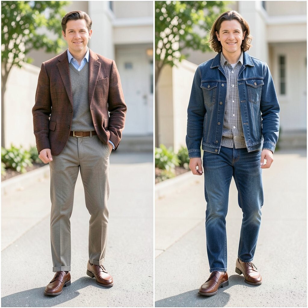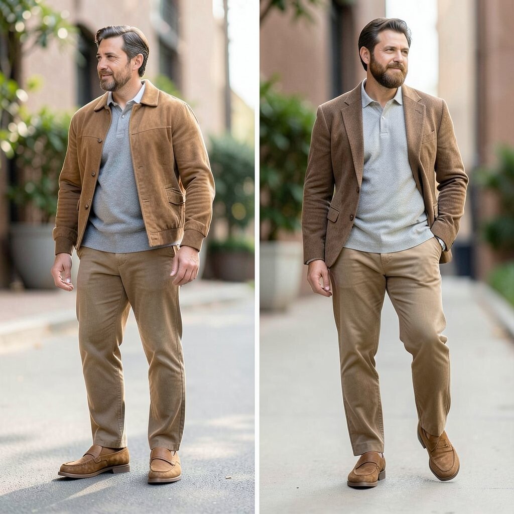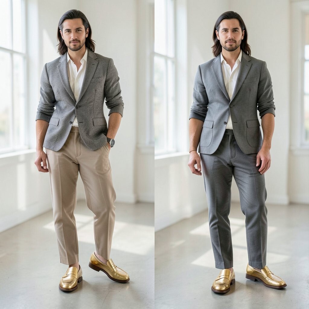 Flat outfits can look boring even when the pieces are nice. Mixing texture, like leather loafers with wool, denim, or satin, makes the after look richer and more interesting.