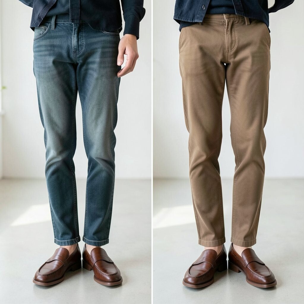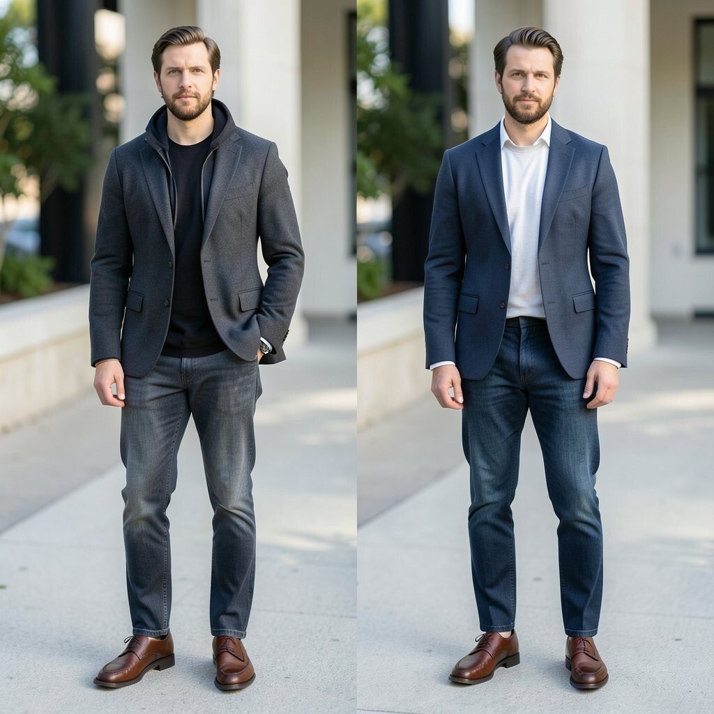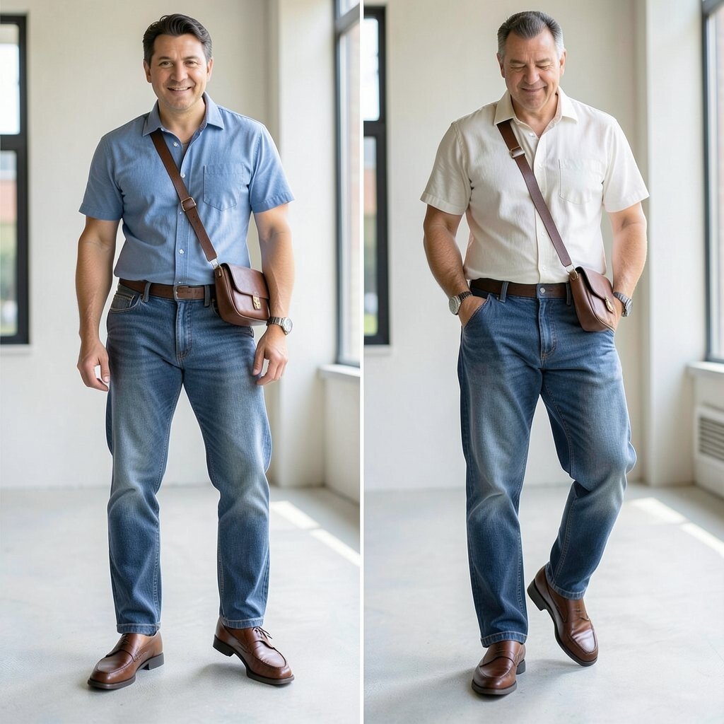 Flat outfits can look boring even when the pieces are nice. Mixing texture, like leather loafers with wool, denim, or satin, makes the after look richer and more interesting.