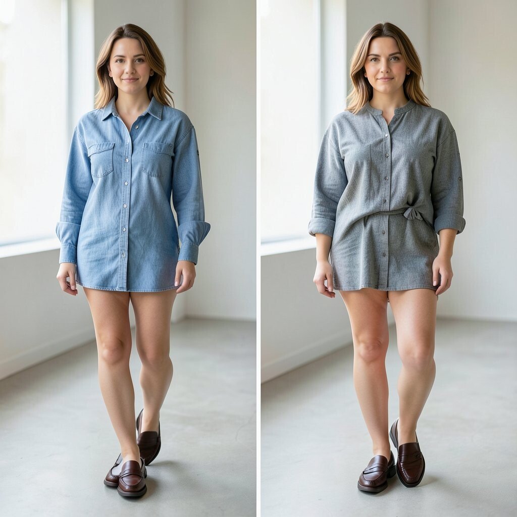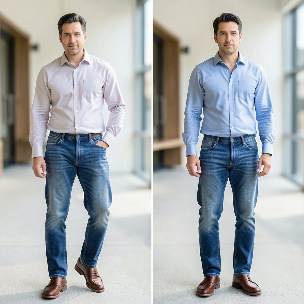 A plain tee with loafers can feel casual and simple. A button-up shirt adds shape, polish, and a little smart energy that changes the whole outfit.