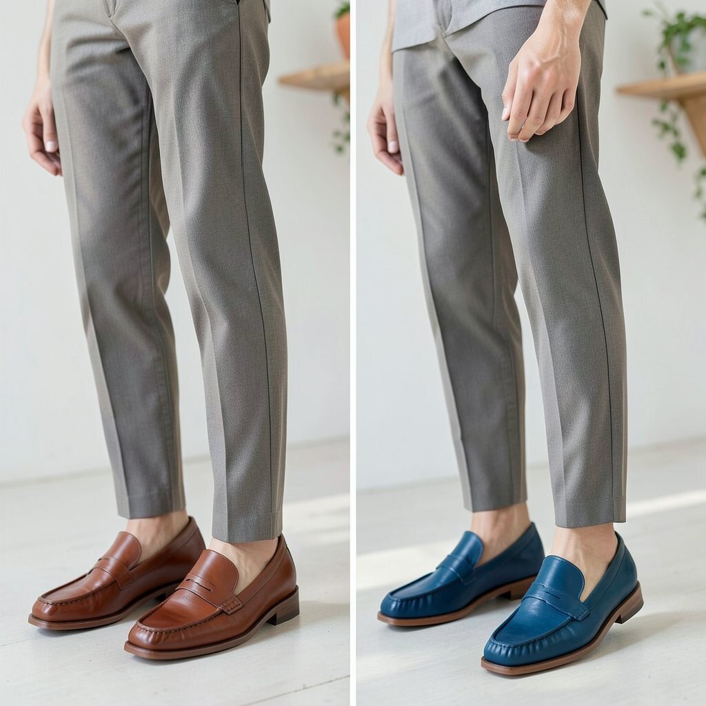 Before, the outfit may feel safe and quiet. After, a flash of color or a cute pattern at the ankle gives the loafers personality and makes people look twice.