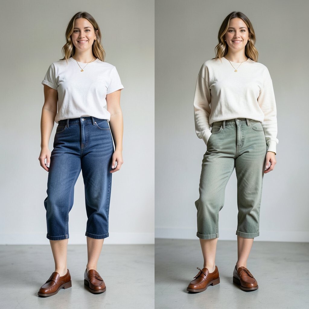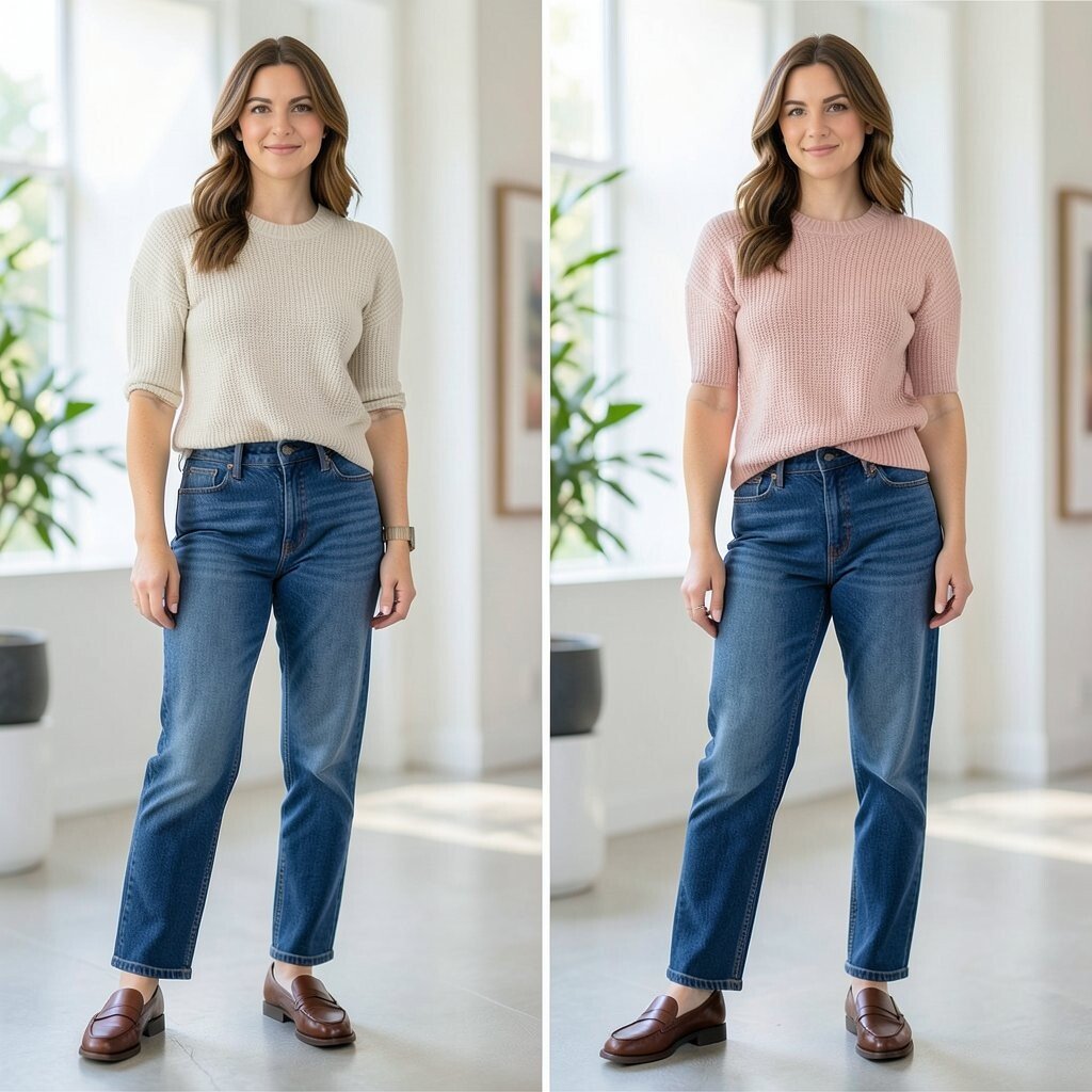 This trick costs nothing and works with jeans, chinos, and even some dresses layered over leggings. It is a quick fix when you want the outfit to feel airy and neat.