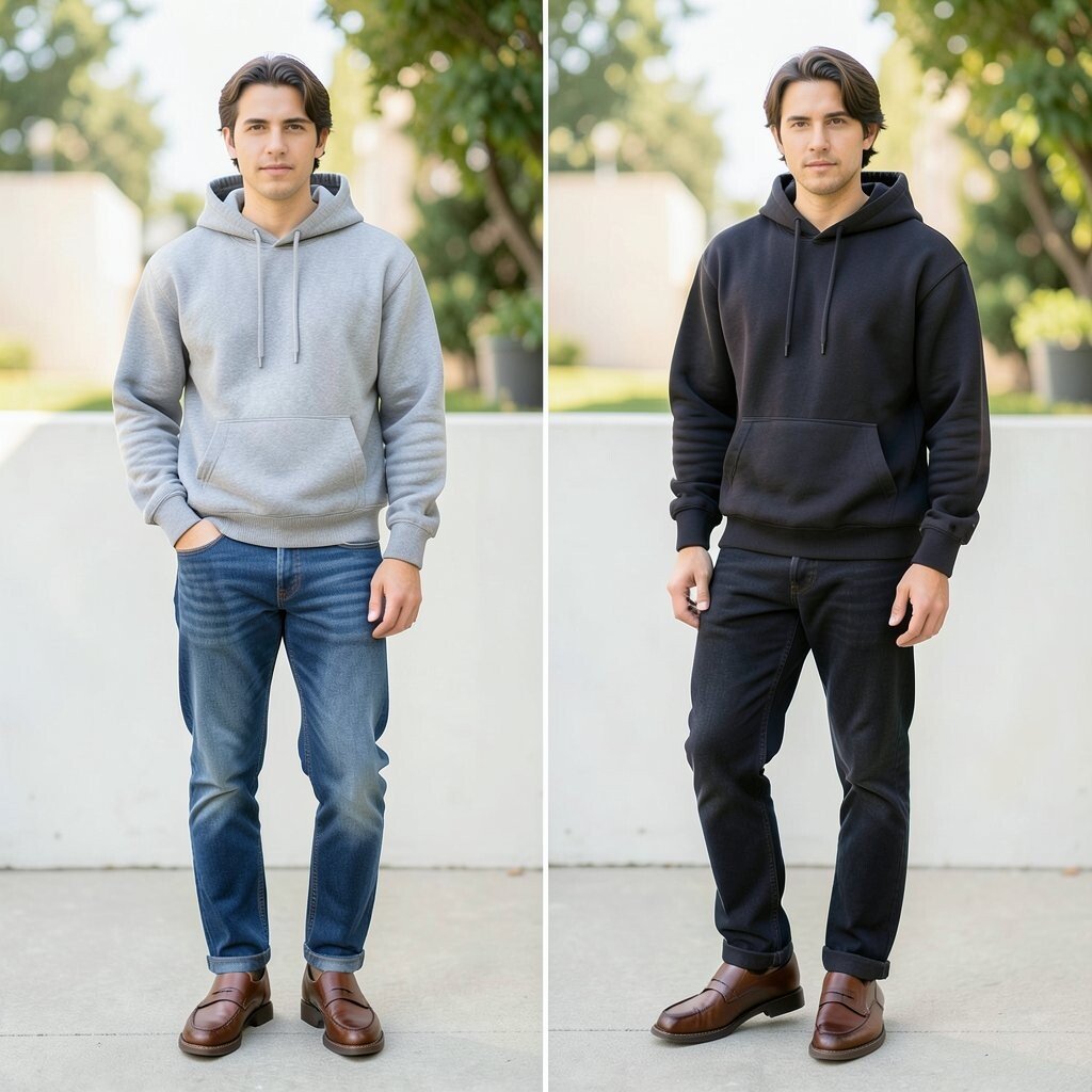A hoodie with loafers can seem too lazy if the rest of the outfit is not planned. The after version feels intentional when you match it with clean joggers or tailored casual pants.