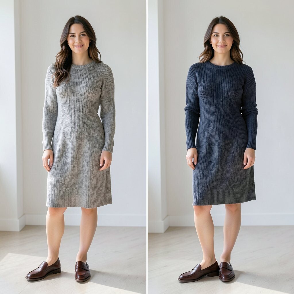 Choose a fitted knit for a sleek line or a relaxed knit for a cozy feel. A belt can help shape the waist if you want the outfit to feel more defined.