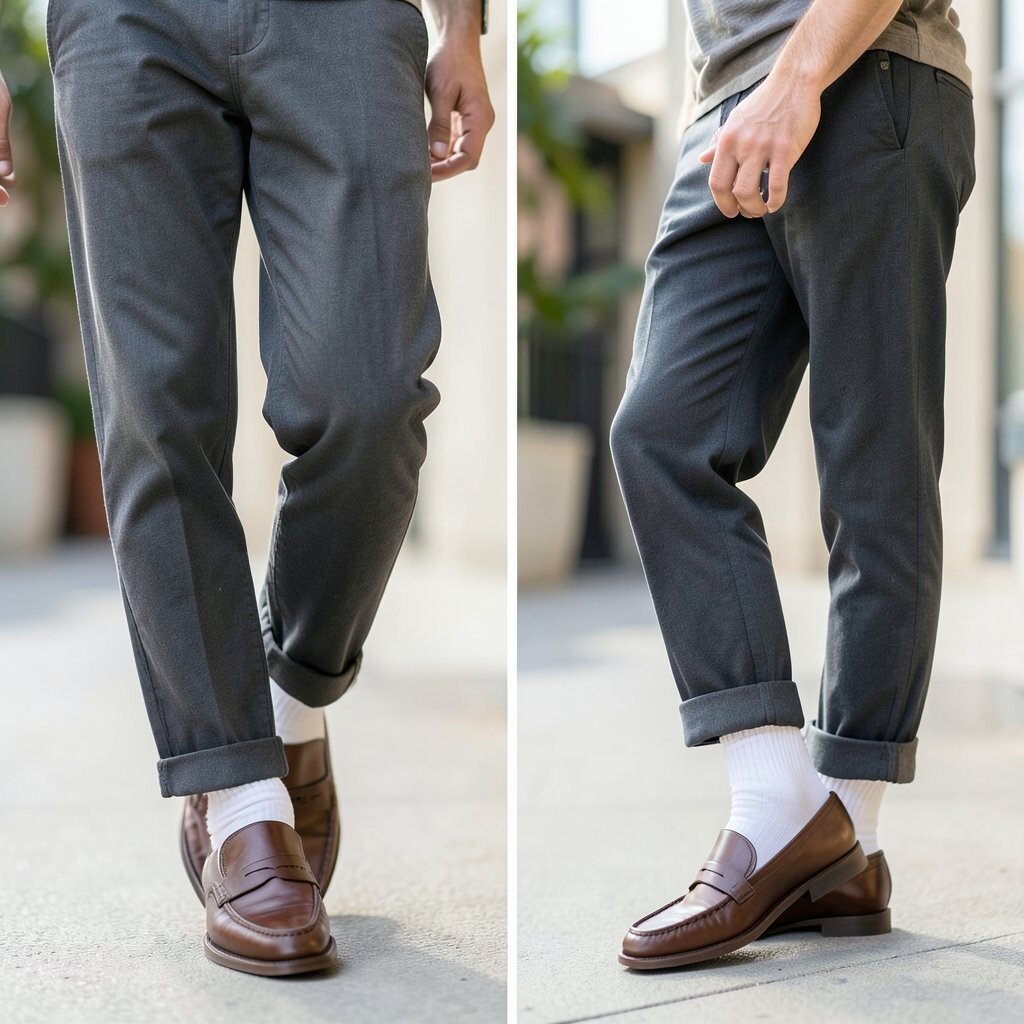 Long pants that cover the shoe can make loafers fade into the background. Cropped pants show the shoe clearly and create a neat break at the ankle.