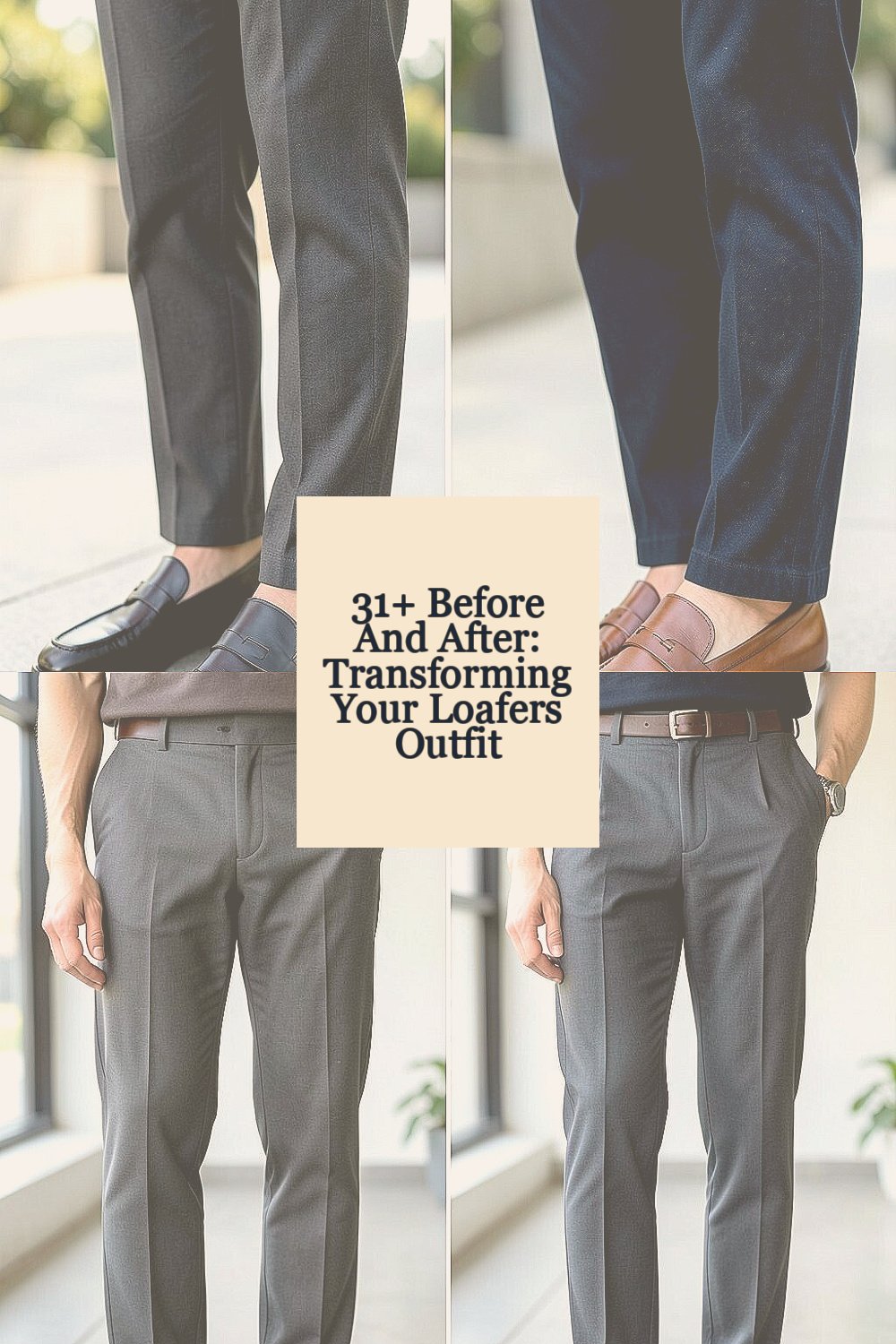 The before outfit may have too many colors fighting for attention. The after version uses one color family, so the loafers blend in and stand out at the same time.