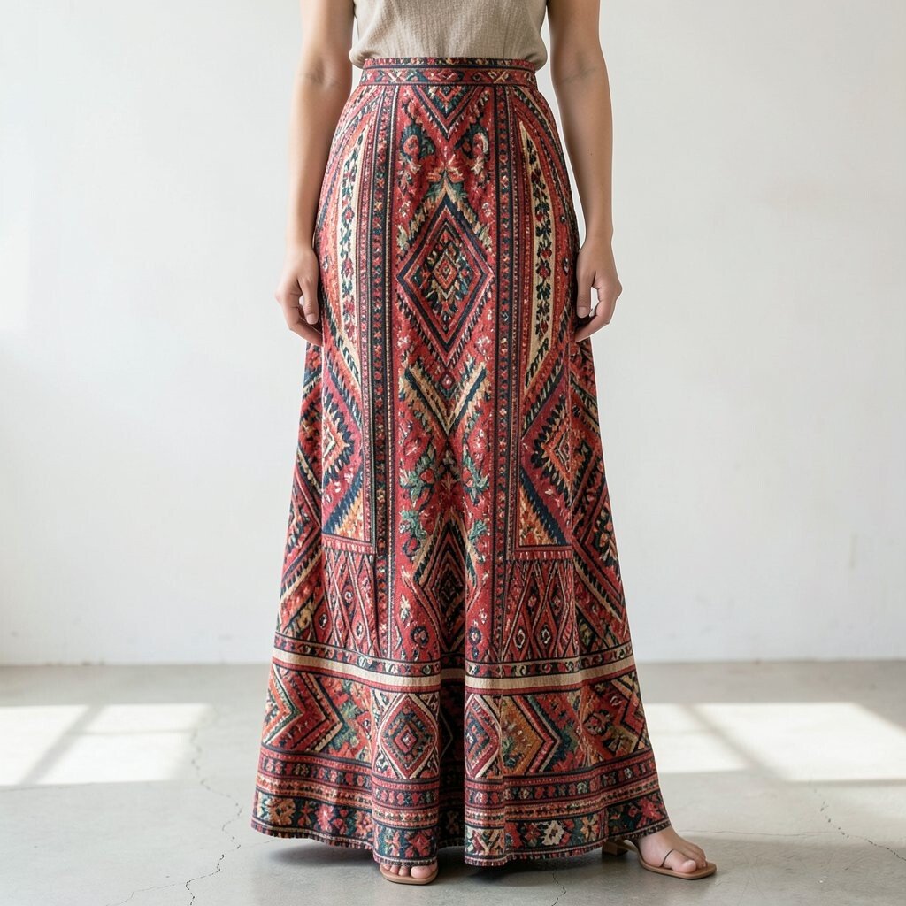 Tribal Vibes With bold, geometric patterns, tribal-inspired skirts bring a touch of adventure and culture to your wardrobe. The earthy tones make them versatile for any season.