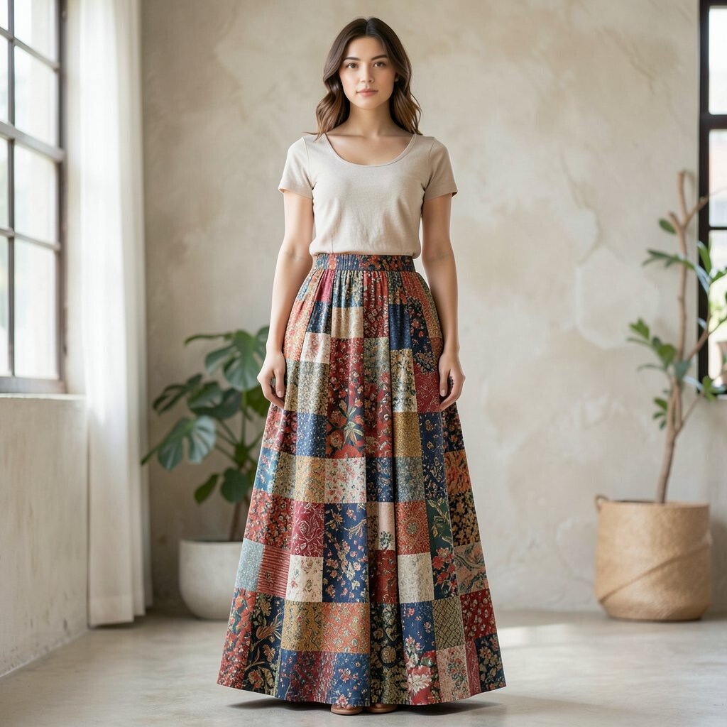 Patchwork Magic Patchwork skirts blend different fabrics and patterns for a truly unique look. Each piece is like a work of art, full of personality and creativity.
