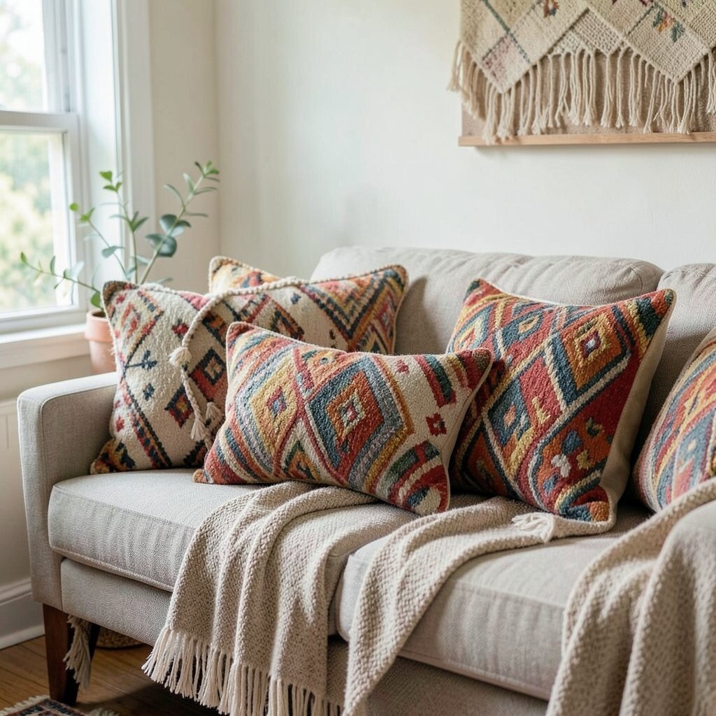 Soft, colorful pillows with tassels and embroidery can transform any seating area. They invite you to relax and add a burst of color and pattern. Mix and match different shapes and sizes for a layered look.