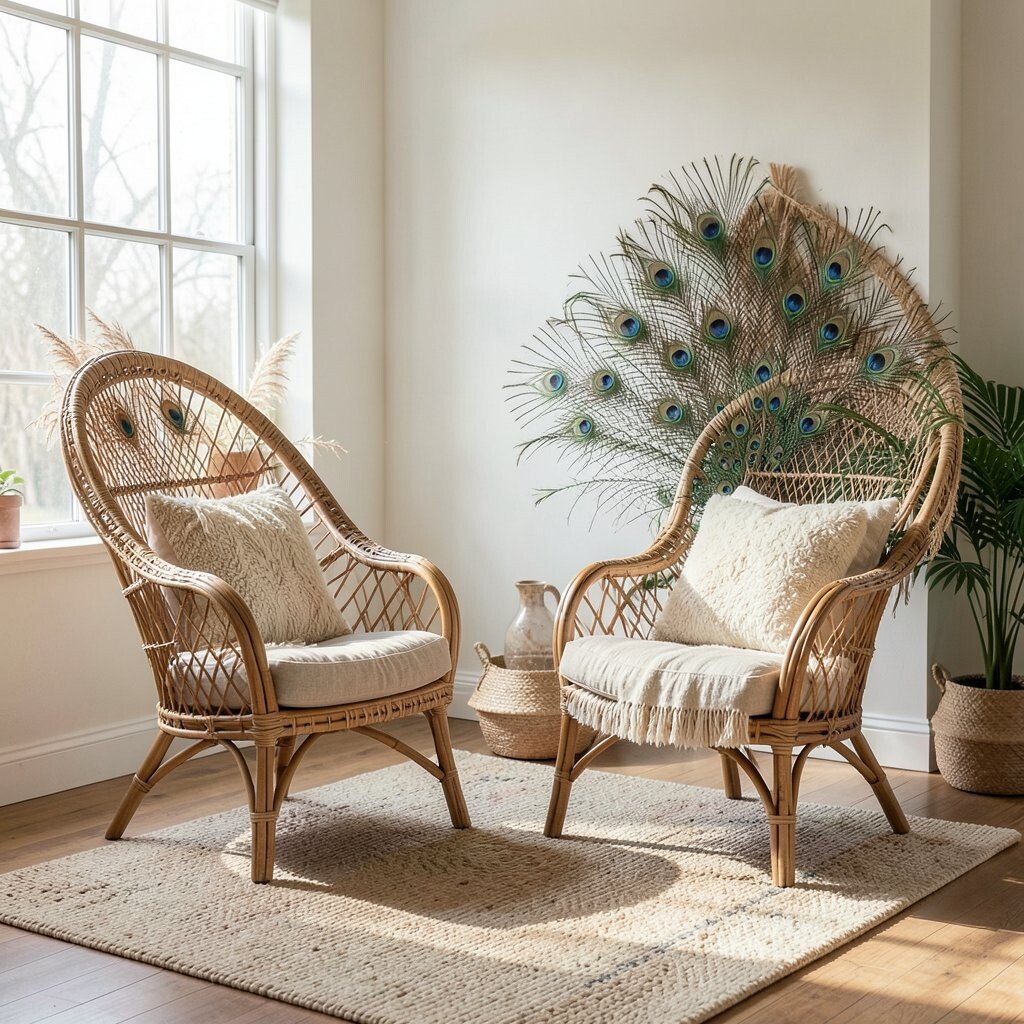 Peacock chairs are iconic in bohemian decor. Their large, ornate shapes make them a statement piece in any room. They offer a touch of elegance and whimsy to your seating area.