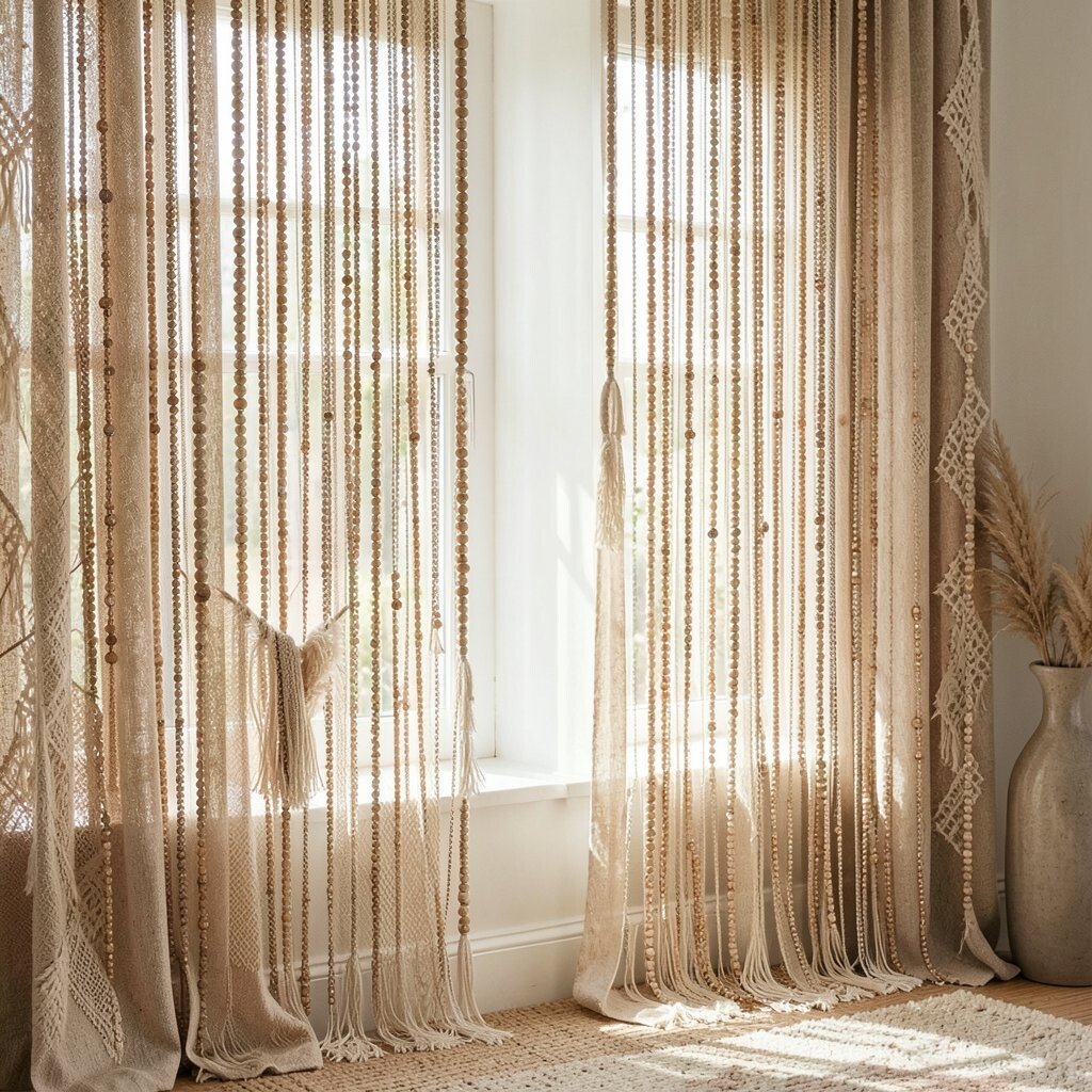 Imagine walking through a curtain of beads clinking together gently. Beaded curtains add a playful and artistic element to doorways or windows. They are a nod to the free-spirited bohemian lifestyle.