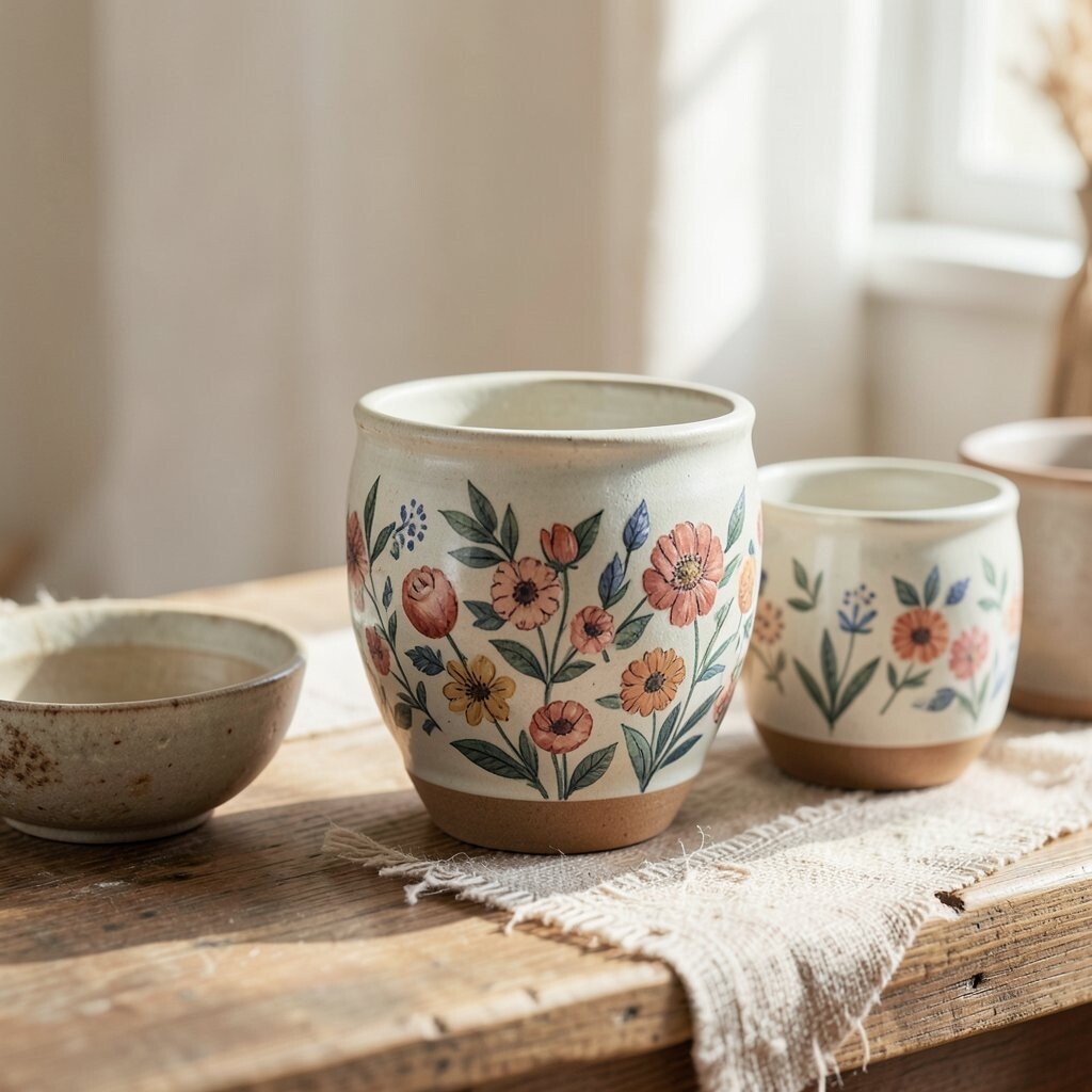 Hand-painted ceramics add a personal touch to your home. Whether it’s plates, vases, or mugs, each piece is unique. The vibrant colors and patterns are perfect for a boho aesthetic.