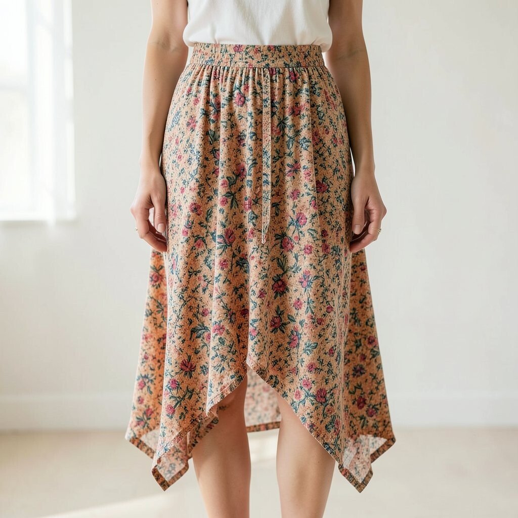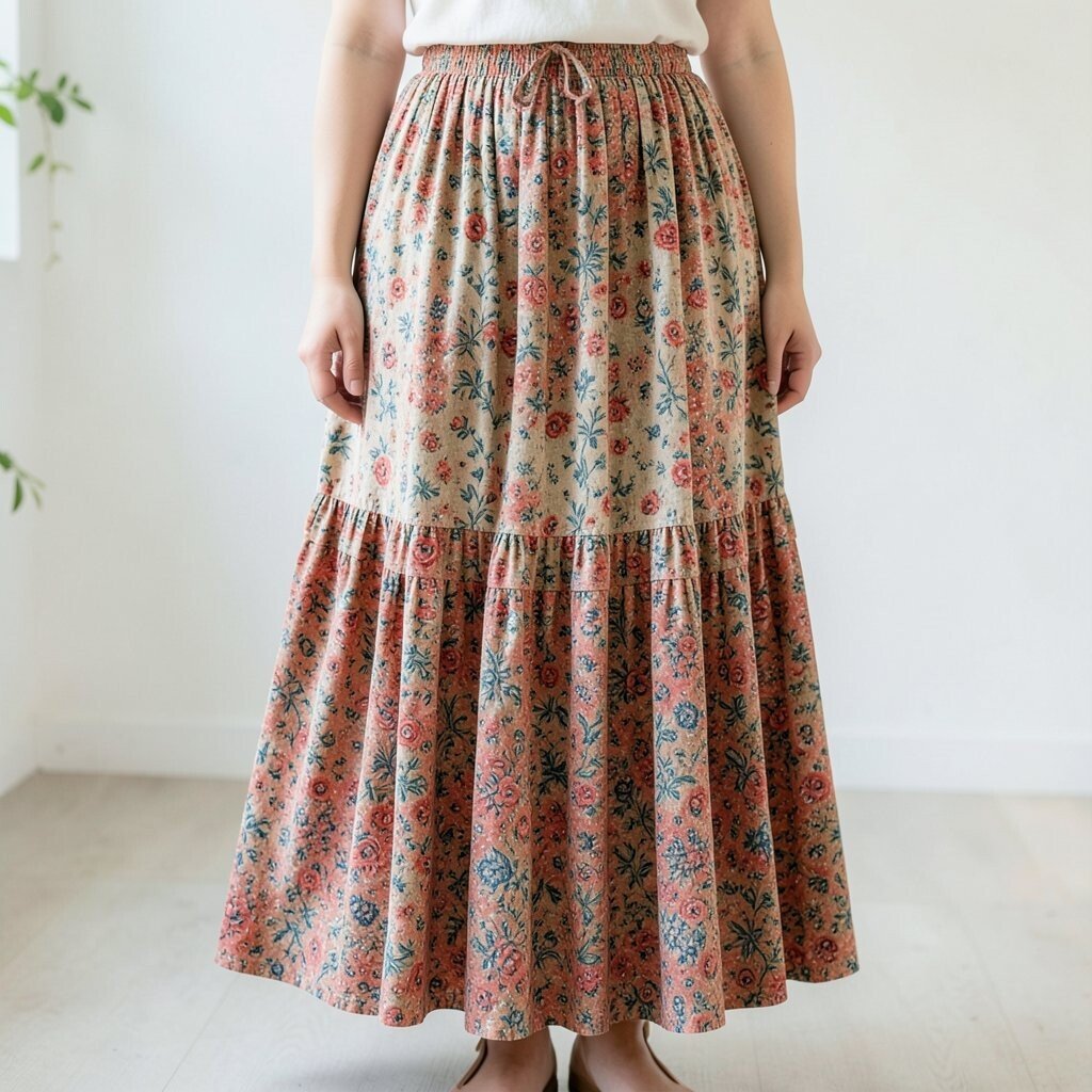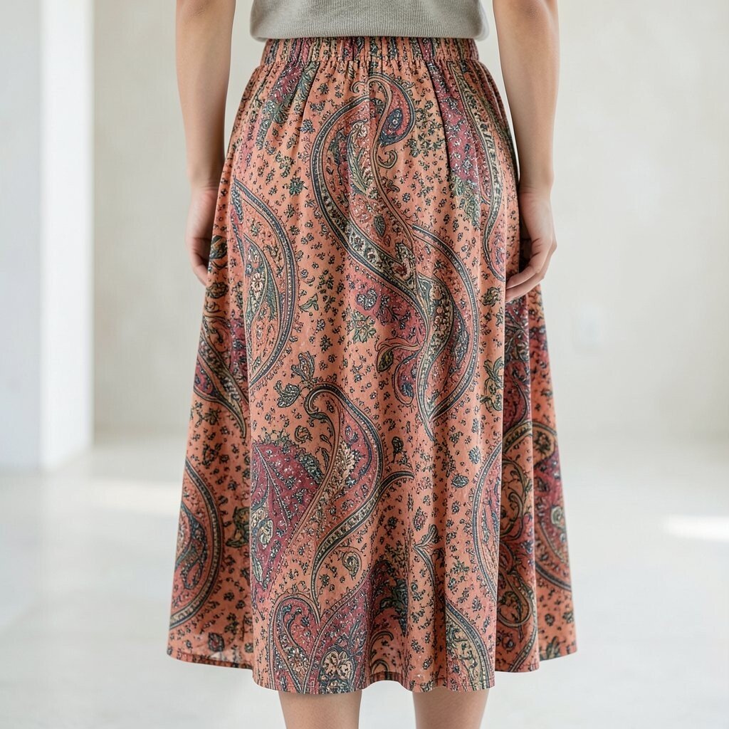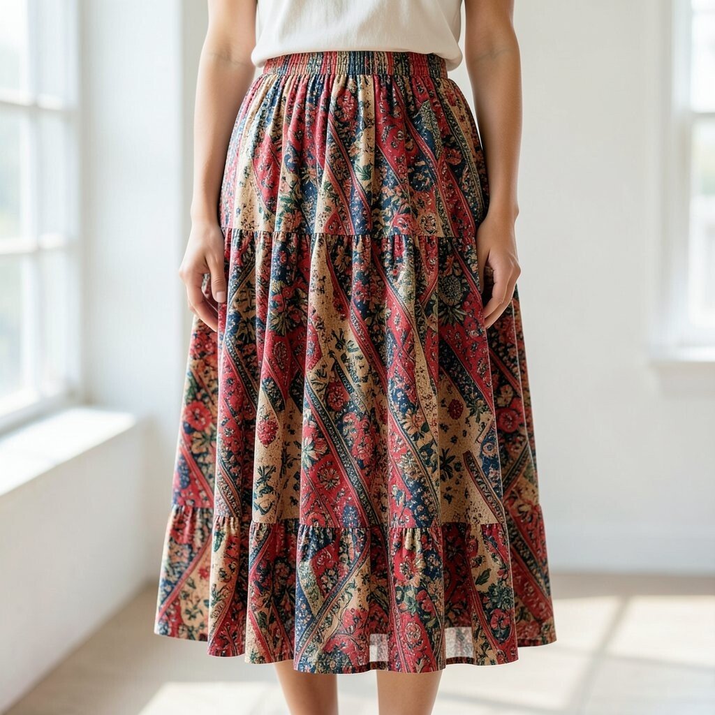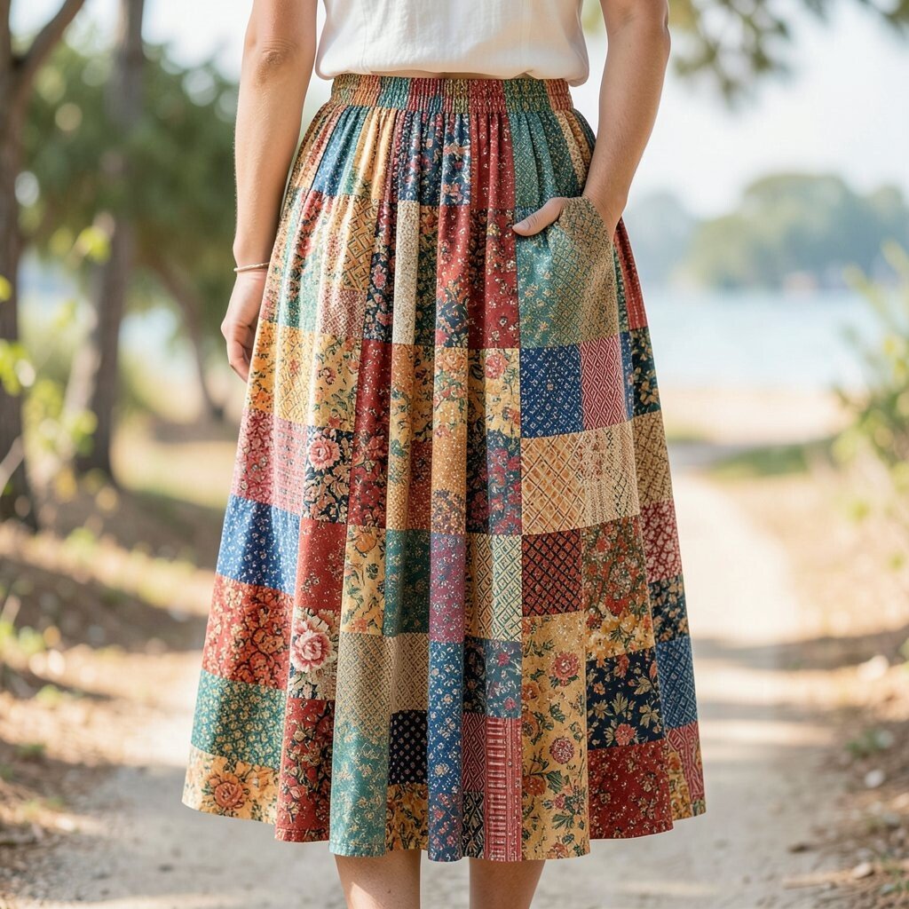 Opt for neutral tops to let the skirt be the star of your outfit. For a personalized touch, pair it with handmade jewelry. The patchwork design often speaks to current trends in sustainable fashion.