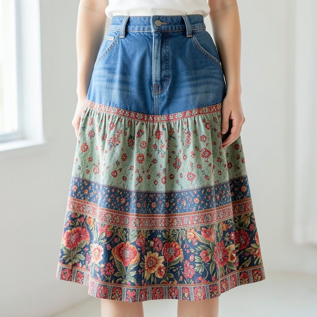 A denim skirt with boho details blends classic and bohemian styles. Look for embellishments like embroidery or patches for added flair.