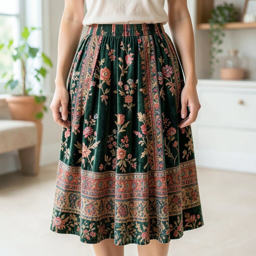 Velvet skirts exude luxury and bohemian style. The plush fabric adds a rich texture to your outfit.