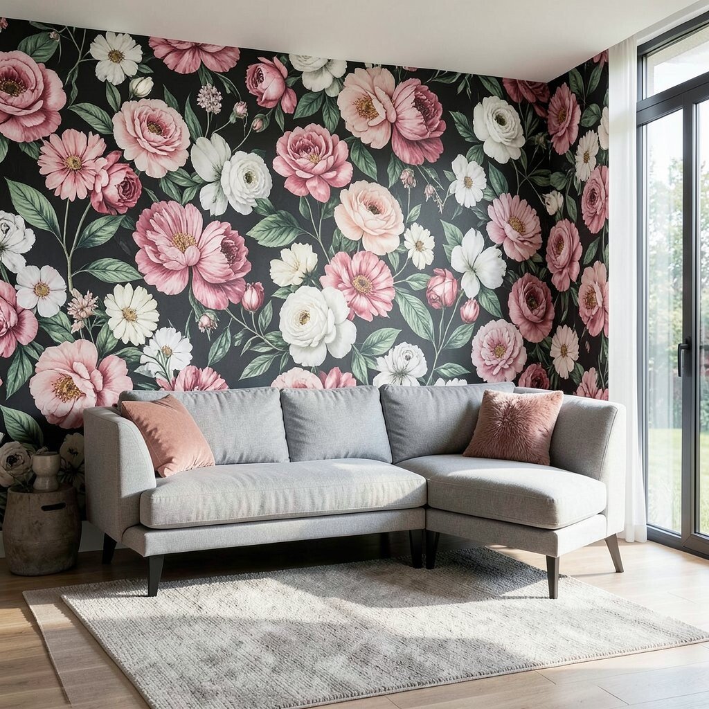Floral murals turn a wall into a big piece of art. They feel rich, dreamy, and full of life.