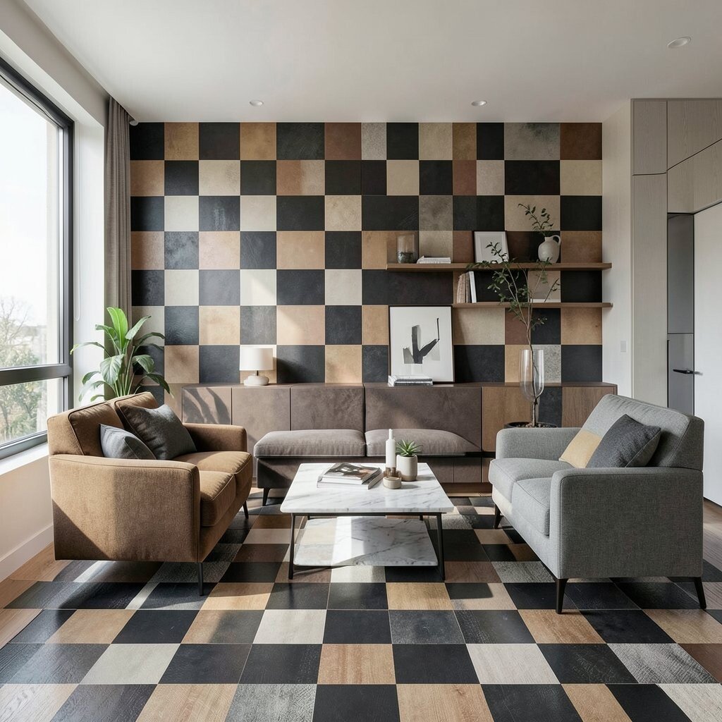 You can use this look on floors, rugs, pillows, or painted furniture. It is a great way to add energy without making the room feel too busy. If you want to save money, paint a checkerboard on a side table or small accent wall.