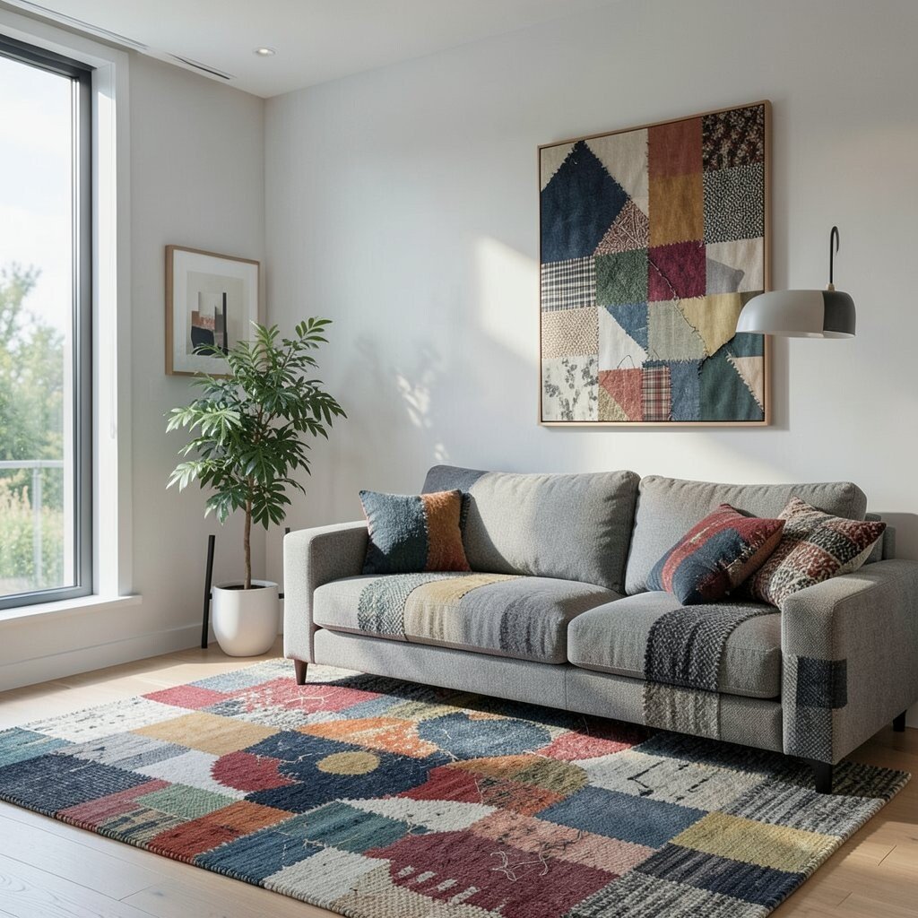 This style is perfect for throws, quilts, rugs, and accent chairs. It gives a room a collected feel, like each piece has a story. If you are watching your budget, patchwork can be a smart way to use fabric scraps or vintage finds.