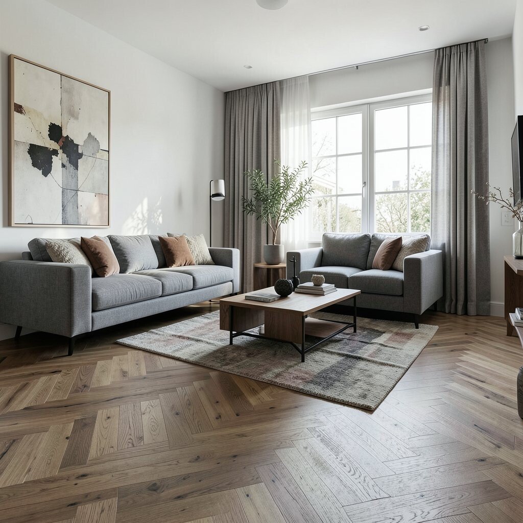 This pattern adds style without needing bright colors or extra decor. It works especially well in hallways, kitchens, and living rooms. If real wood is too pricey, look for vinyl or laminate with a herringbone design.