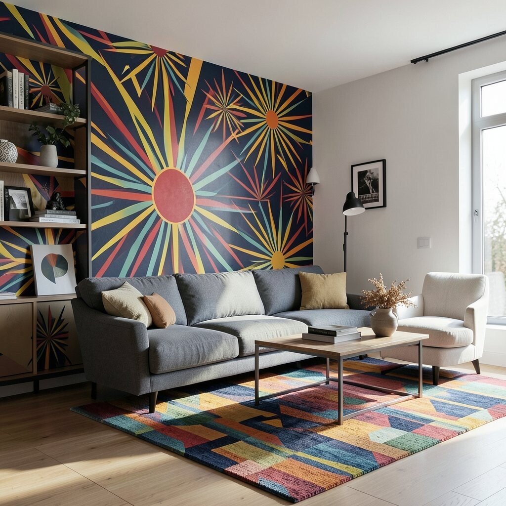 Atomic shapes bring a retro mood that still feels fresh today. Their starbursts, orbits, and playful lines give a room a fun spark.