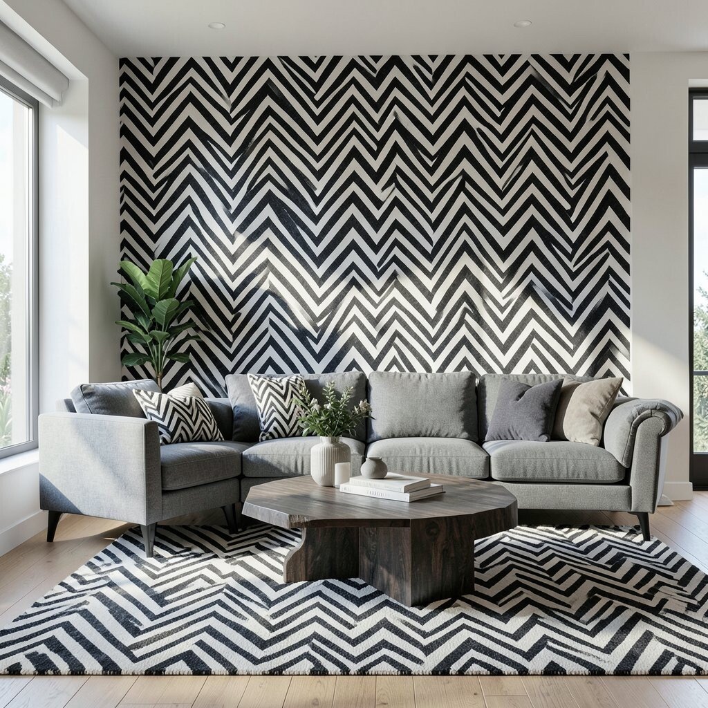 Chevron can feel modern when the colors are simple and the lines are clean. It can also feel softer when the tones are muted. Try pairing it with solid furniture so the room does not feel too busy.
