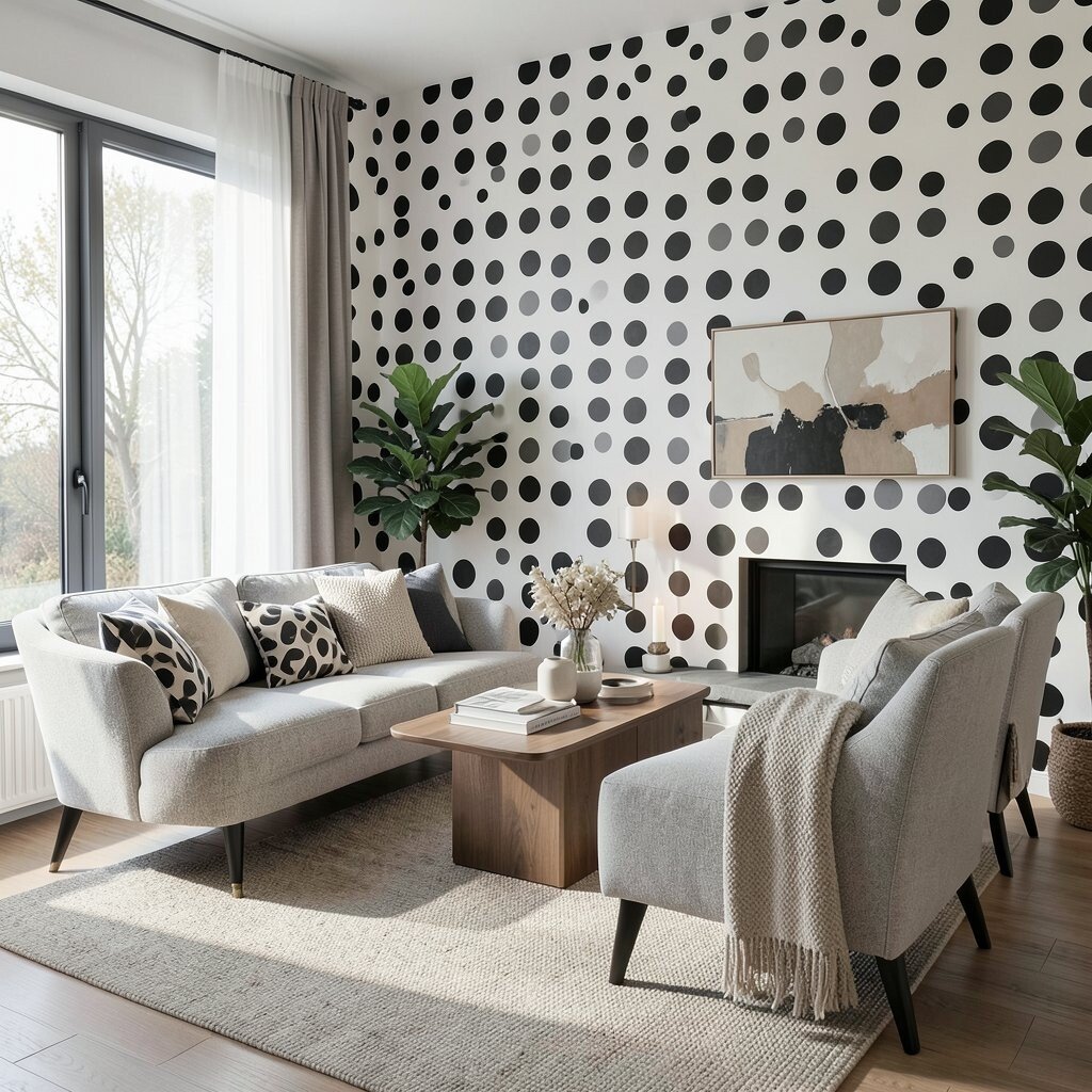 This pattern works well in kids’ rooms, laundry rooms, and playful kitchens. It can be tiny and subtle or large and bold, depending on the look you want. For a low-cost update, try dotted curtains, bedding, or a painted stencil wall.