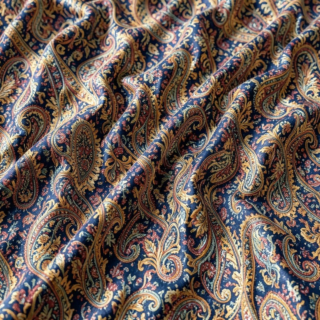 Paisley has a swirly shape that feels rich and full of character. The print can look boho, vintage, or even a bit fancy, depending on the colors and fabric.