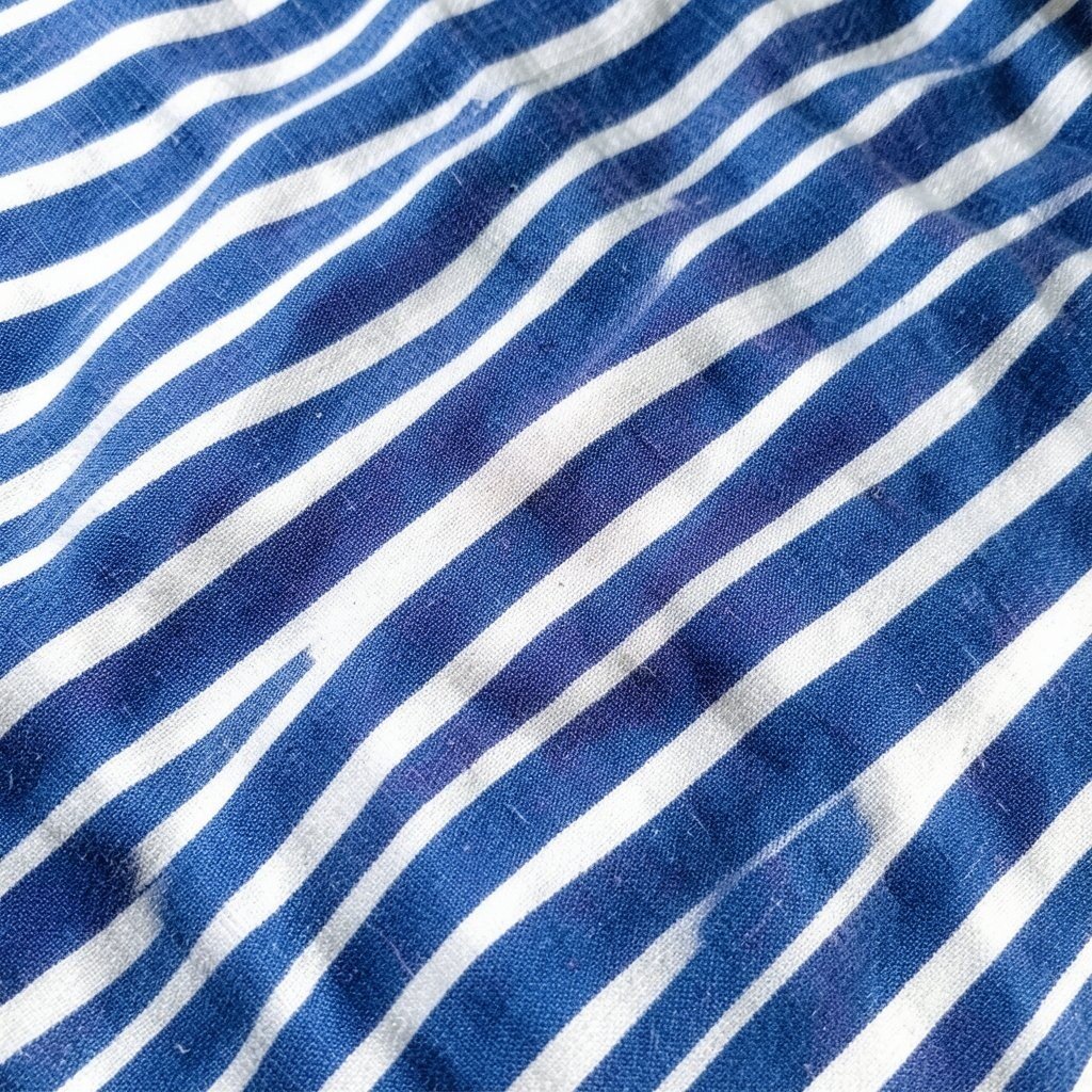 Wide navy stripes bring a calm, polished feel to any outfit. The deep color gives the pattern a rich look that feels timeless.